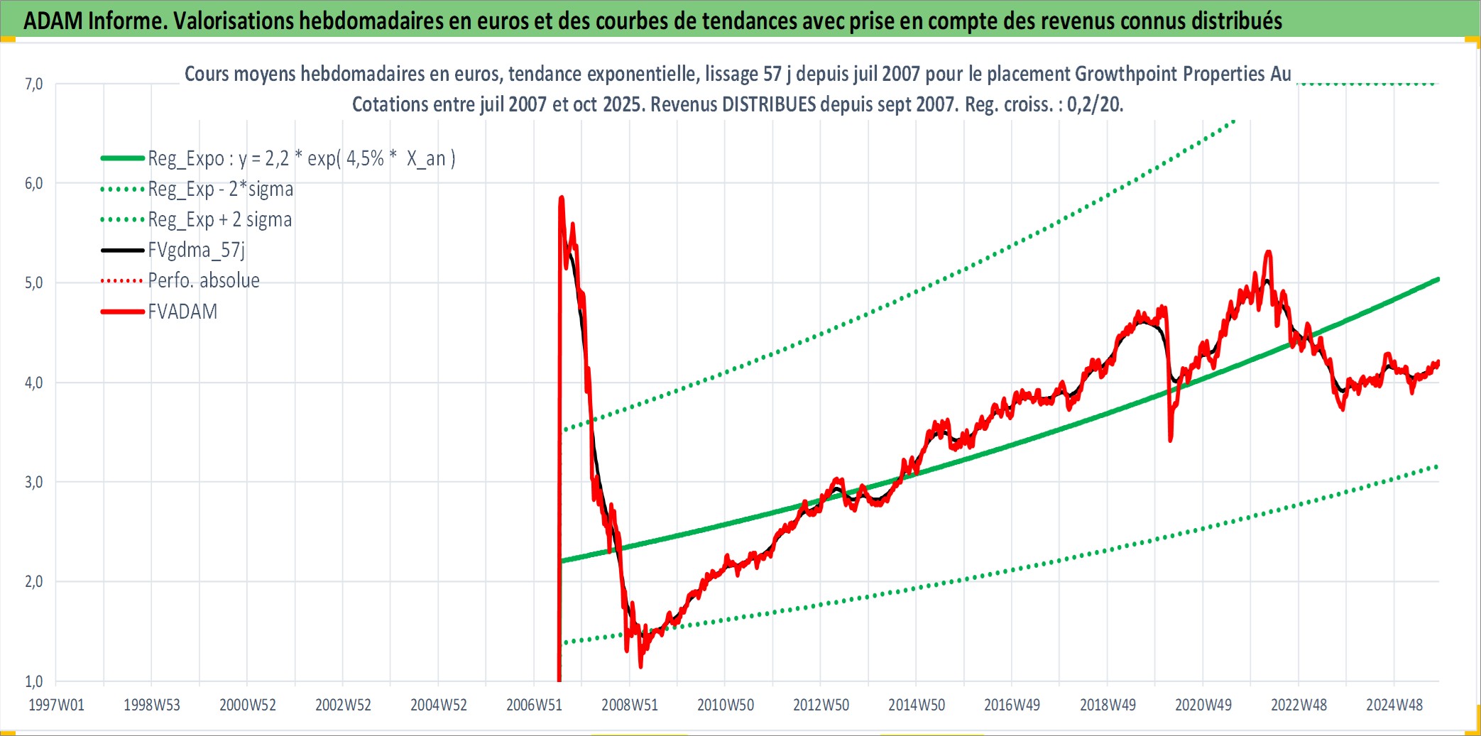 Site dédié aux investisseursPage dédiée sur site financeAnalyse des valorisations hebdomadaires de l'action Growthpoint Properties Australia. Cet actif est cote en AUD. Les valorisations sont en contrevaleur EURO et couvrent les semaines 2007W27 a 2025W44. Les revenus de cet actif financier sont pris en compte depuis la semaine 2007W39. La note ESG de cet actif n'est pas connue.