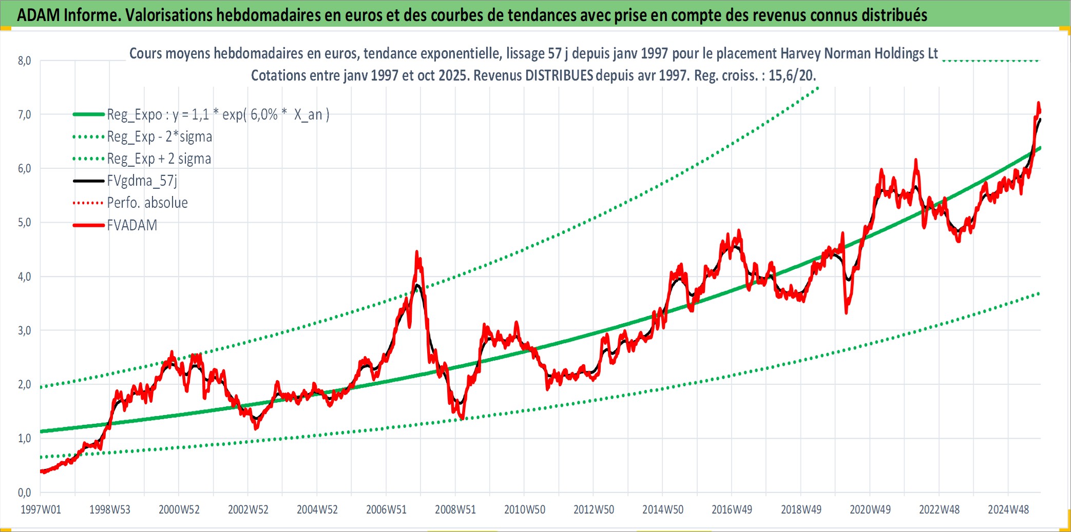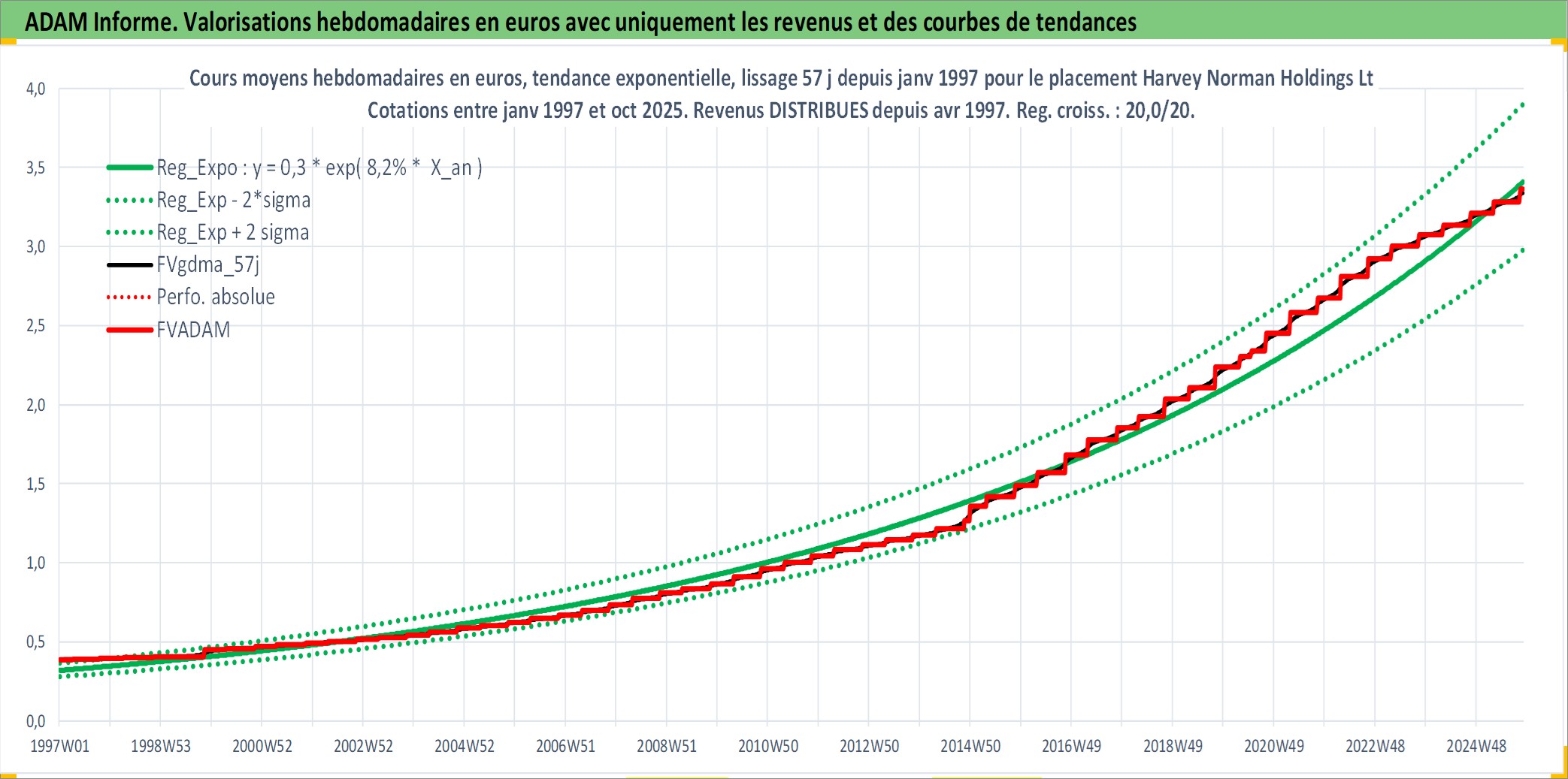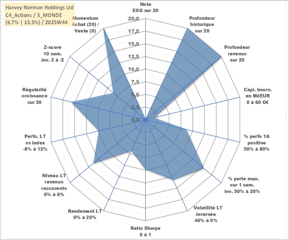 Site dédié aux investisseursPage dédiée sur site financeAnalyse des valorisations hebdomadaires de l'action Harvey Norman Holdings Ltd. Cet actif est cote en AUD. Les valorisations sont en contrevaleur EURO et couvrent les semaines 1997W01 a 2025W44. Les revenus de cet actif financier sont pris en compte depuis la semaine 1997W15. La note ESG de cet actif n'est pas connue.