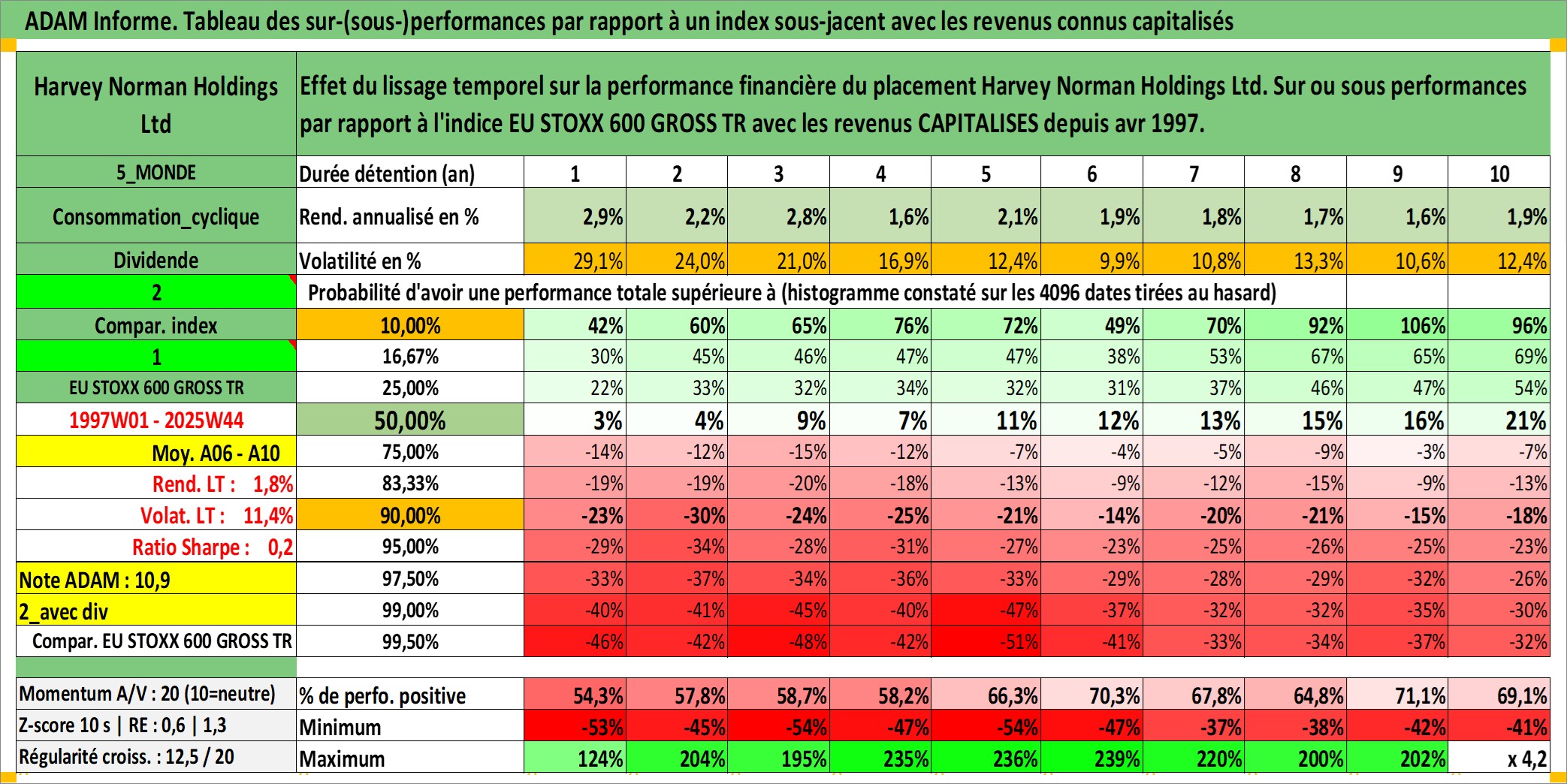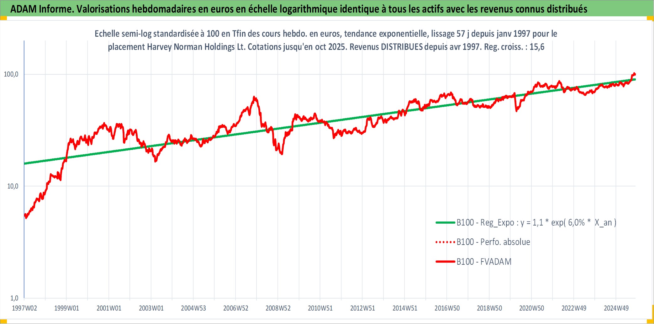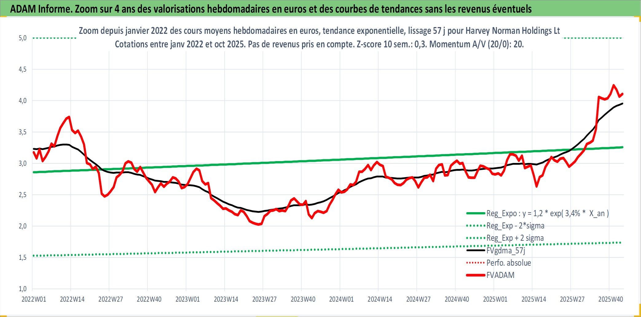 Site dédié aux investisseursPage dédiée sur site financeAnalyse des valorisations hebdomadaires de l'action Harvey Norman Holdings Ltd. Cet actif est cote en AUD. Les valorisations sont en contrevaleur EURO et couvrent les semaines 1997W01 a 2025W44. Les revenus de cet actif financier sont pris en compte depuis la semaine 1997W15. La note ESG de cet actif n'est pas connue.