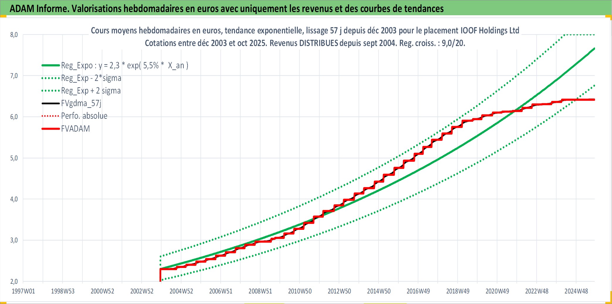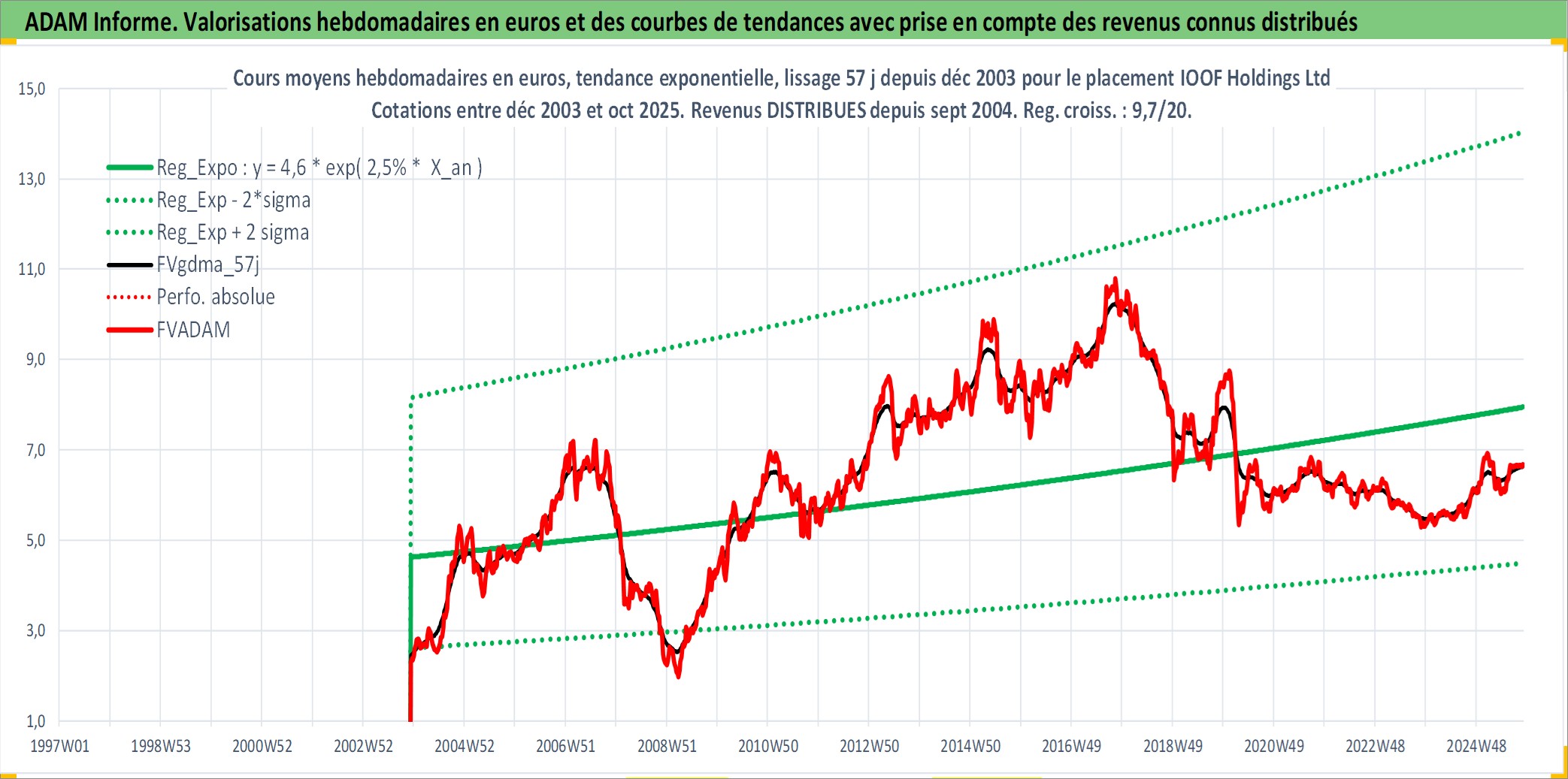 Site dédié aux investisseursPage dédiée sur site financeAnalyse des valorisations hebdomadaires de l'action IOOF Holdings Ltd. Cet actif est cote en AUD. Les valorisations sont en contrevaleur EURO et couvrent les semaines 2003W49 a 2025W44. Les revenus de cet actif financier sont pris en compte depuis la semaine 2004W40. La note ESG de cet actif n'est pas connue.