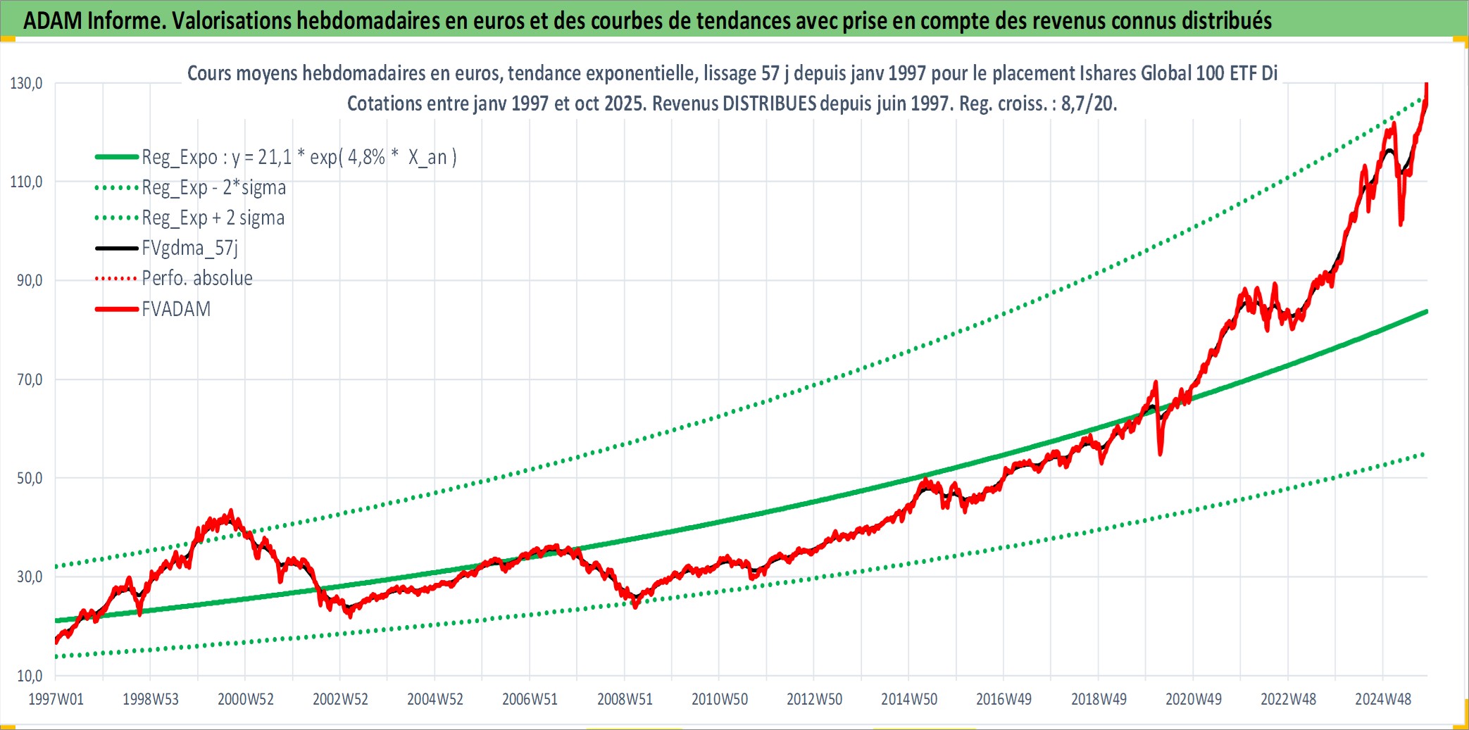 Site dédié aux investisseursPage dédiée sur site financeAnalyse des valorisations hebdomadaires du fonds Ishares Global 100 ETF Dist. Cet actif est cote en AUD. Les valorisations sont en contrevaleur EURO et couvrent les semaines 1997W01 a 2025W44. Les revenus de cet actif financier sont pris en compte depuis la semaine 1997W25. La note ESG de cet actif n'est pas connue.
