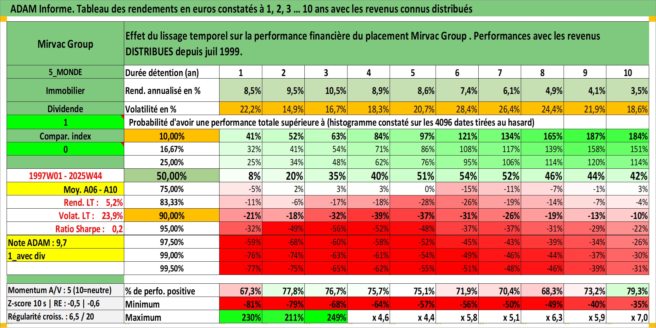 Site dédié aux investisseursPage dédiée sur site financeAnalyse des valorisations hebdomadaires de l'action Mirvac Group . Cet actif est cote en AUD. Les valorisations sont en contrevaleur EURO et couvrent les semaines 1997W01 a 2025W44. Les revenus de cet actif financier sont pris en compte depuis la semaine 1999W26. La note globale ESG de cet actif est estimee a 18.0 (apres rebasage entre 0 et 20).