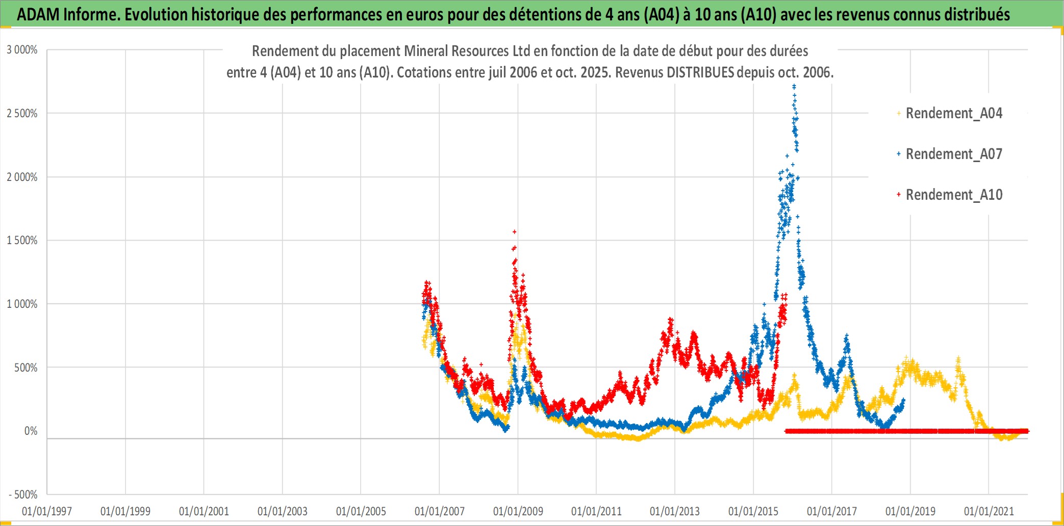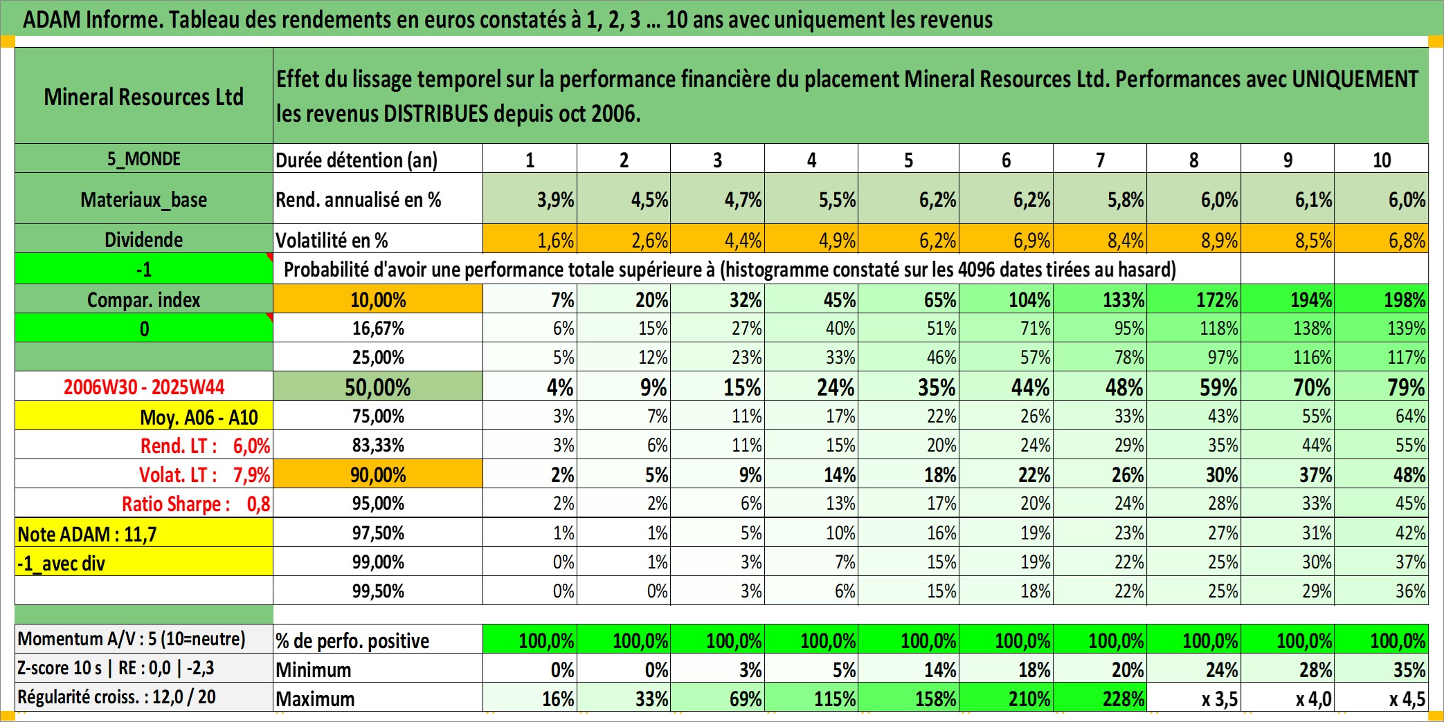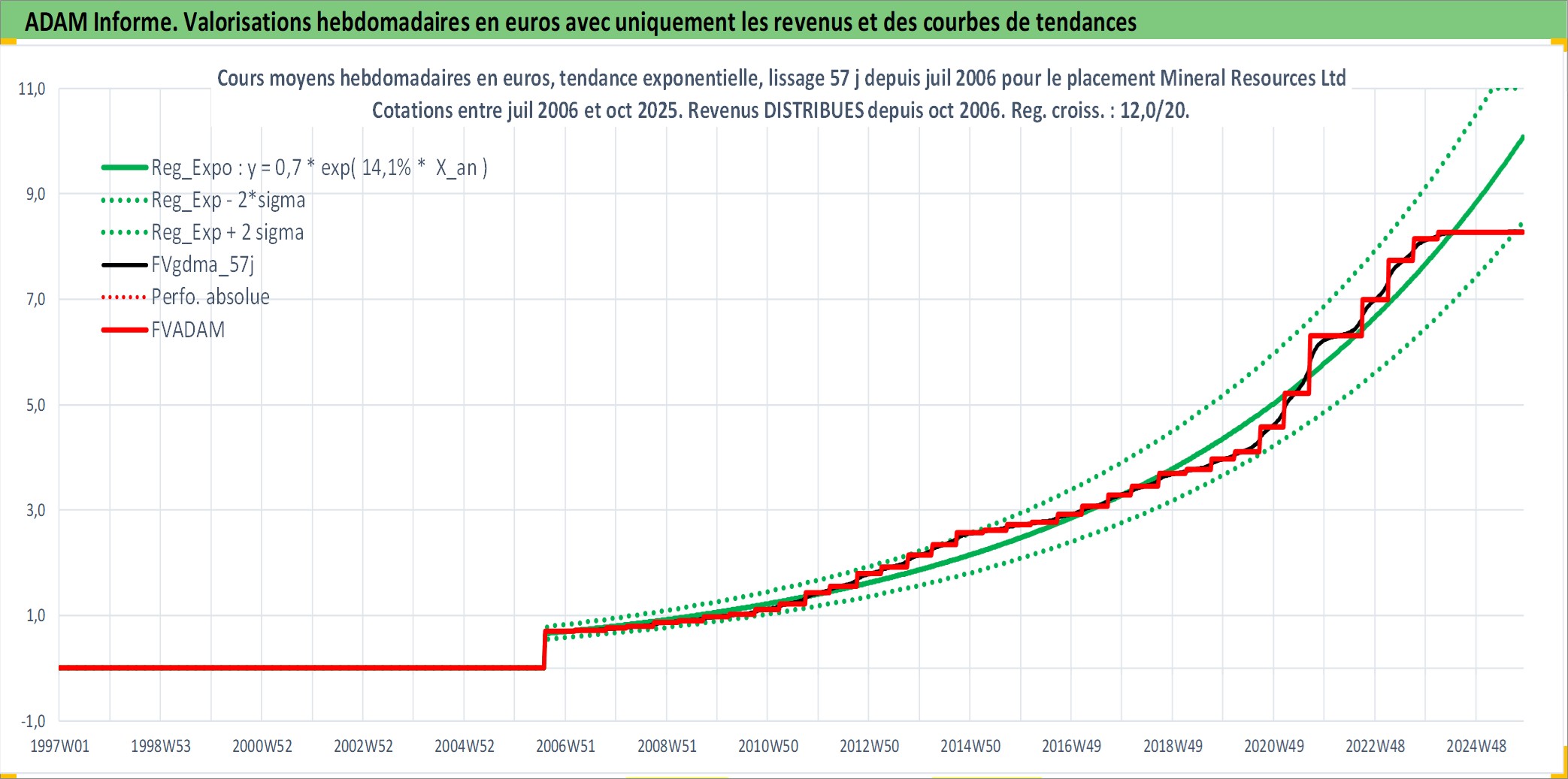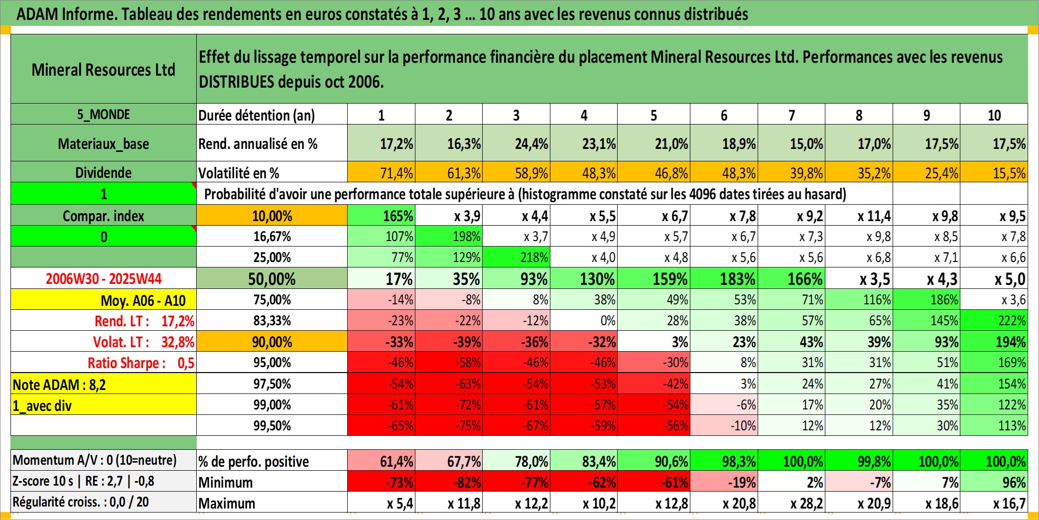 Site dédié aux investisseursPage dédiée sur site financeAnalyse des valorisations hebdomadaires de l'action Mineral Resources Ltd. Cet actif est cote en AUD. Les valorisations sont en contrevaleur EURO et couvrent les semaines 2006W30 a 2025W44. Les revenus de cet actif financier sont pris en compte depuis la semaine 2006W41. La note ESG de cet actif n'est pas connue.