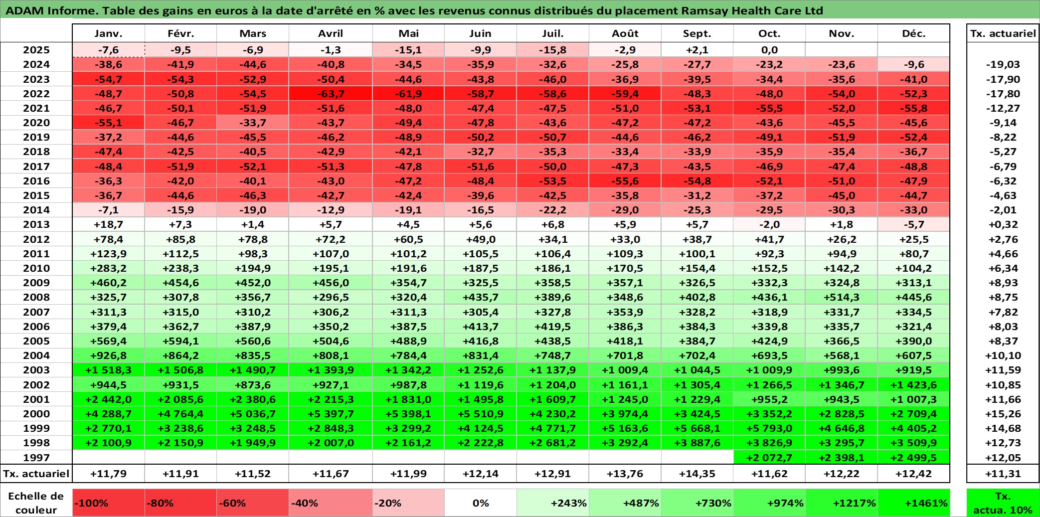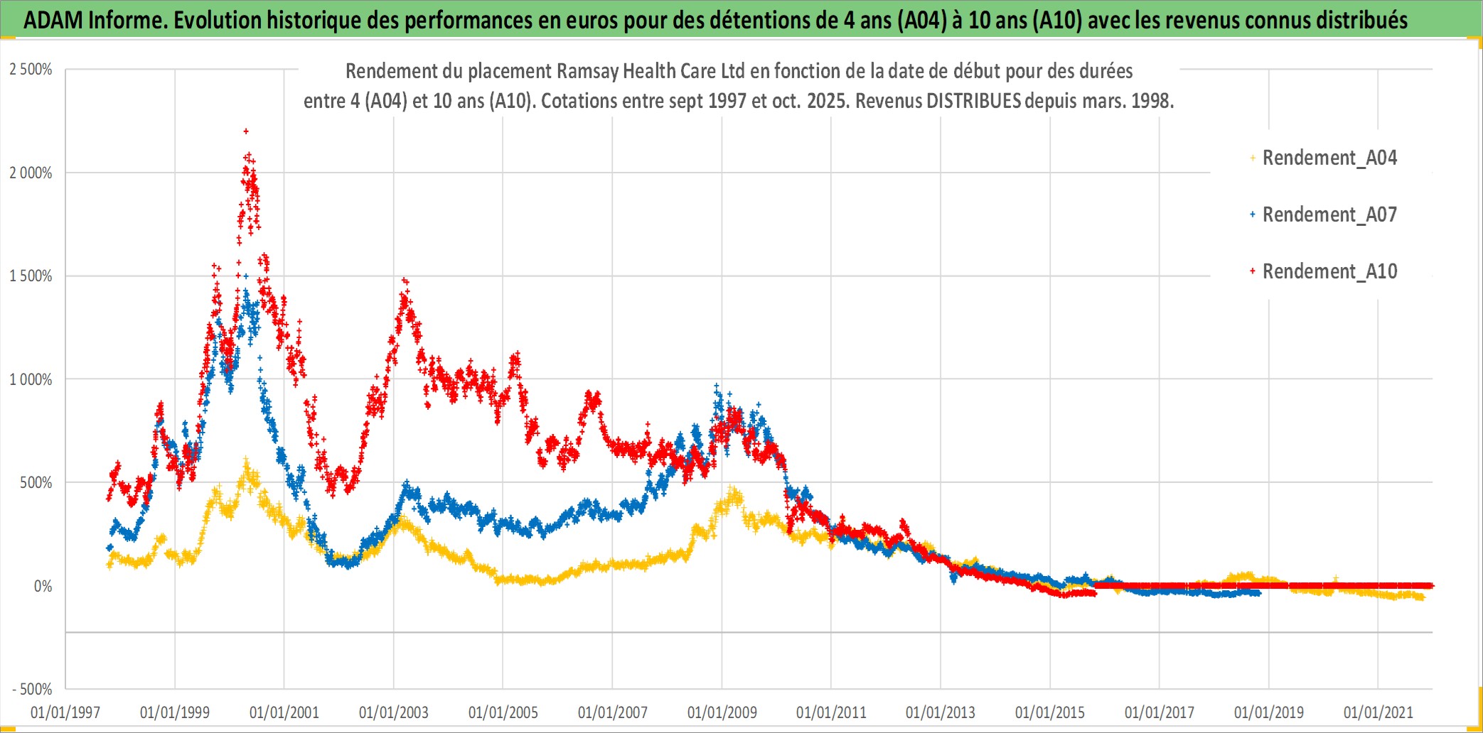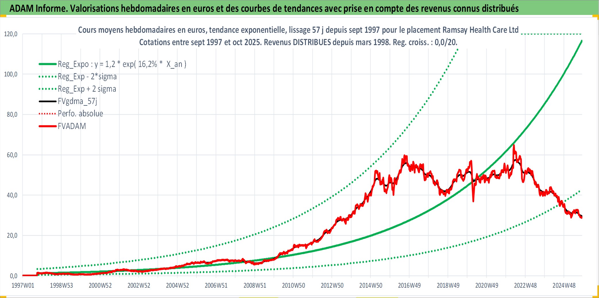 Site dédié aux investisseursPage dédiée sur site financeAnalyse des valorisations hebdomadaires de l'action Ramsay Health Care Ltd. Cet actif est cote en AUD. Les valorisations sont en contrevaleur EURO et couvrent les semaines 1997W40 a 2025W44. Les revenus de cet actif financier sont pris en compte depuis la semaine 1998W10. La note globale ESG de cet actif est estimee a 10.0 (apres rebasage entre 0 et 20).