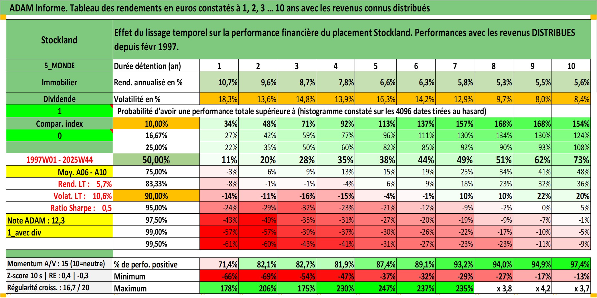 Site dédié aux investisseursPage dédiée sur site financeAnalyse des valorisations hebdomadaires de l'action Stockland. Cet actif est cote en AUD. Les valorisations sont en contrevaleur EURO et couvrent les semaines 1997W01 a 2025W44. Les revenus de cet actif financier sont pris en compte depuis la semaine 1997W07. La note globale ESG de cet actif est estimee a 18.0 (apres rebasage entre 0 et 20).