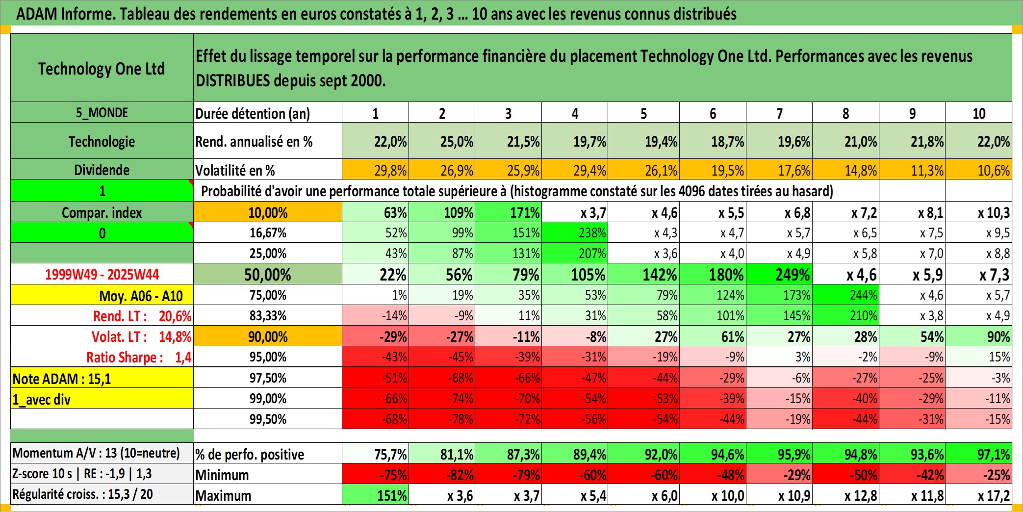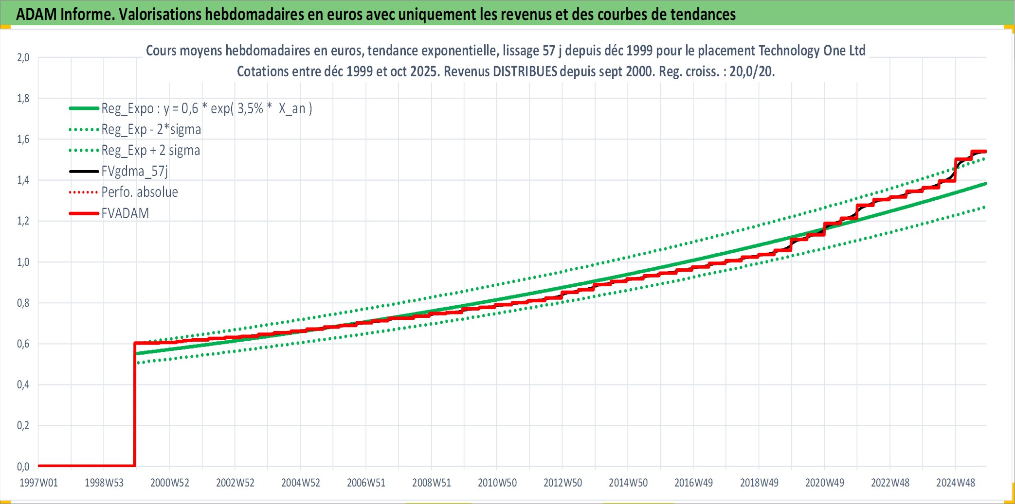 Site dédié aux investisseursPage dédiée sur site financeAnalyse des valorisations hebdomadaires de l'action Technology One Ltd. Cet actif est cote en AUD. Les valorisations sont en contrevaleur EURO et couvrent les semaines 1999W49 a 2025W44. Les revenus de cet actif financier sont pris en compte depuis la semaine 2000W36. La note ESG de cet actif n'est pas connue.