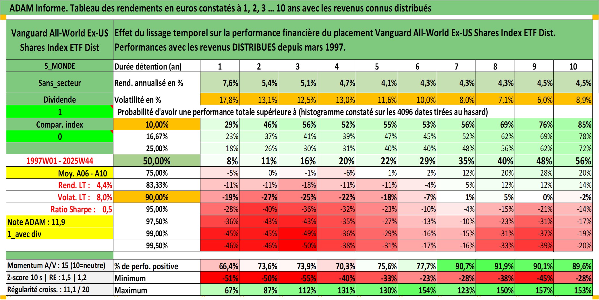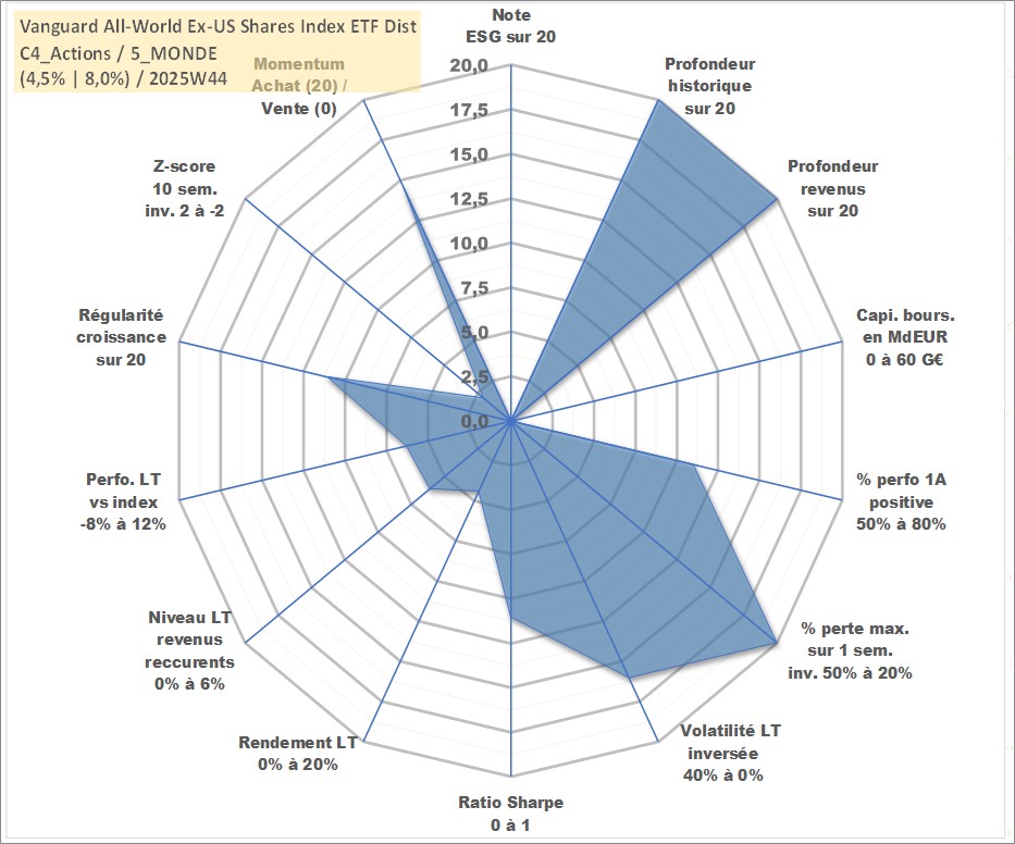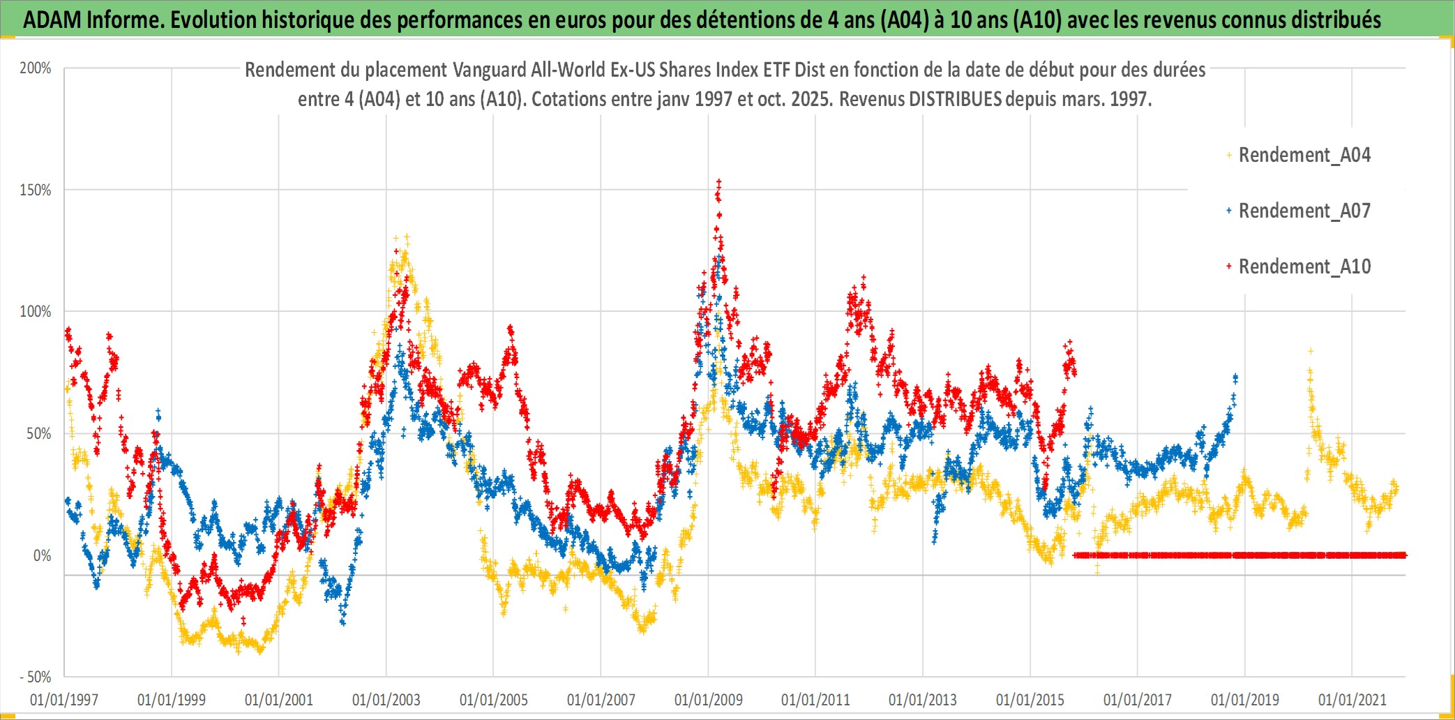 Site dédié aux investisseursPage dédiée sur site financeAnalyse des valorisations hebdomadaires du fonds Vanguard All-World Ex-US Shares Index ETF Dist. Cet actif est cote en AUD. Les valorisations sont en contrevaleur EURO et couvrent les semaines 1997W01 a 2025W44. Les revenus de cet actif financier sont pris en compte depuis la semaine 1997W12. La note ESG de cet actif n'est pas connue.