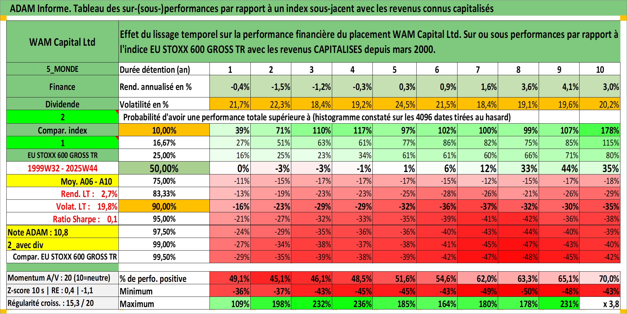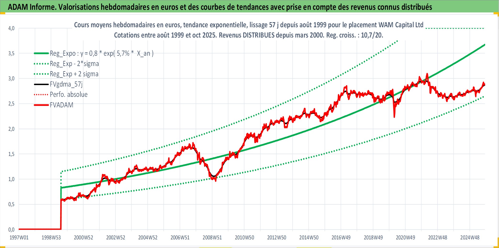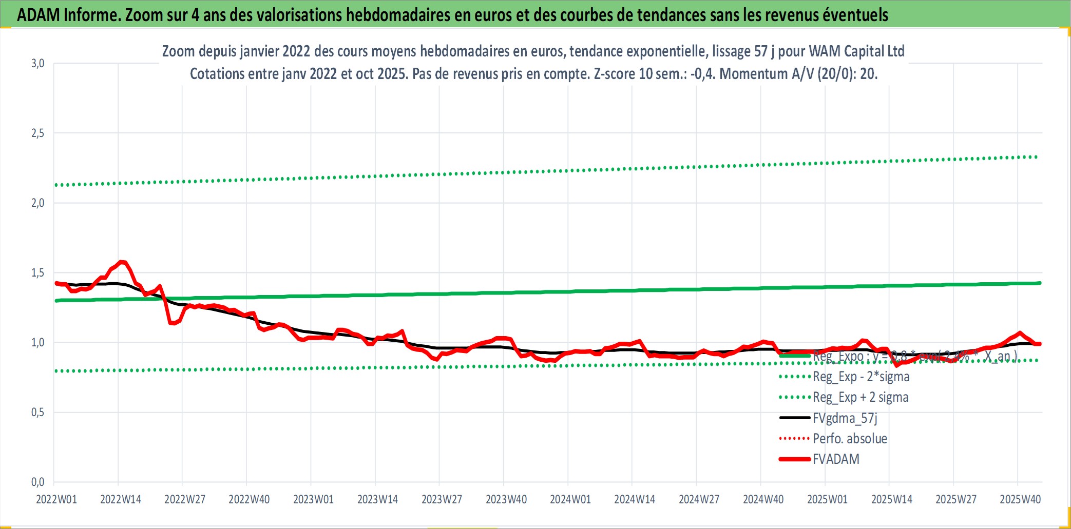 Site dédié aux investisseursPage dédiée sur site financeAnalyse des valorisations hebdomadaires de l'action WAM Capital Ltd. Cet actif est cote en AUD. Les valorisations sont en contrevaleur EURO et couvrent les semaines 1999W32 a 2025W44. Les revenus de cet actif financier sont pris en compte depuis la semaine 2000W11. La note ESG de cet actif n'est pas connue.