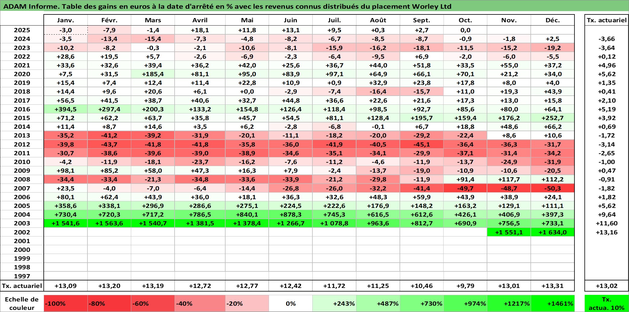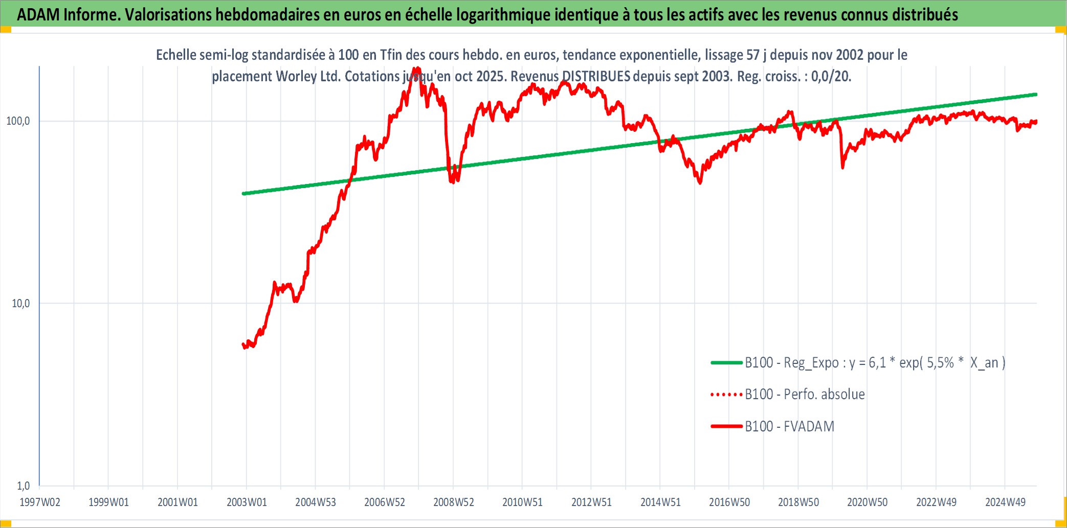 Site dédié aux investisseursPage dédiée sur site financeAnalyse des valorisations hebdomadaires de l'action Worley Ltd. Cet actif est cote en AUD. Les valorisations sont en contrevaleur EURO et couvrent les semaines 2002W48 a 2025W44. Les revenus de cet actif financier sont pris en compte depuis la semaine 2003W40. La note ESG de cet actif n'est pas connue.