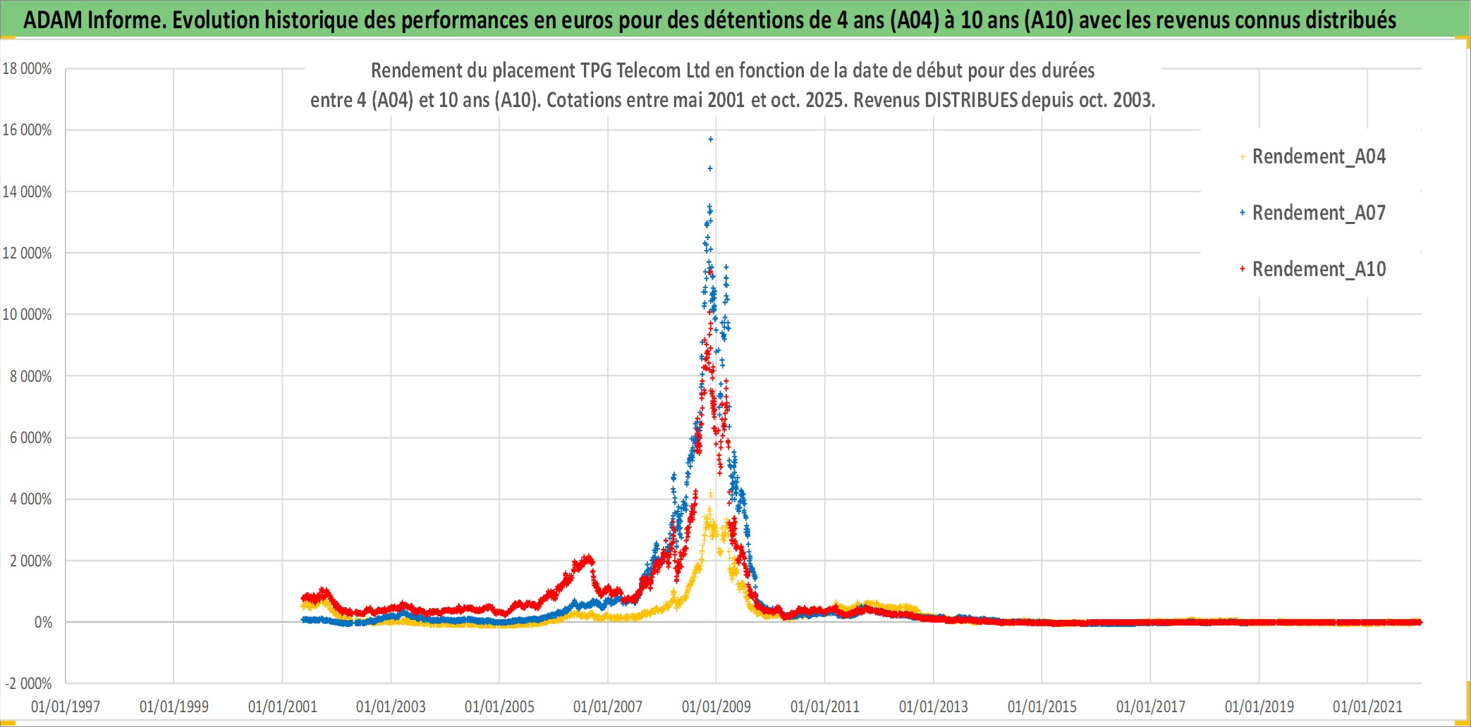 Site dédié aux investisseursPage dédiée sur site financeAnalyse des valorisations hebdomadaires de l'action TPG Telecom Ltd. Cet actif est cote en AUD. Les valorisations sont en contrevaleur EURO et couvrent les semaines 2001W19 a 2025W44. Les revenus de cet actif financier sont pris en compte depuis la semaine 2003W40. La note ESG de cet actif n'est pas connue.