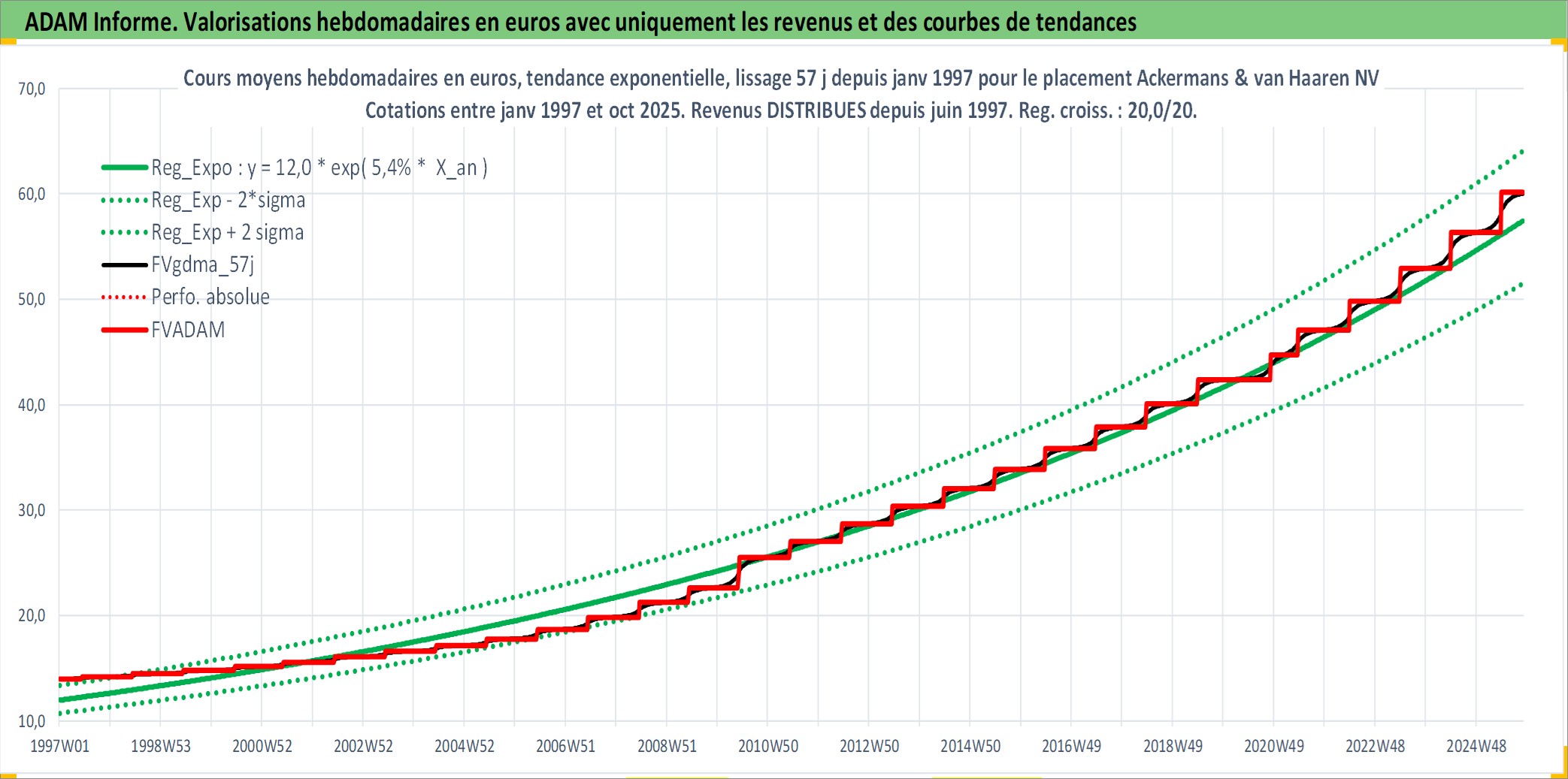 Site dédié aux investisseursPage dédiée sur site financeAnalyse des valorisations hebdomadaires de l'action Ackermans & van Haaren NV. Cet actif est cote en EUR. Les valorisations couvrent les semaines 1997W01 a 2025W44. Les revenus de cet actif financier sont pris en compte depuis la semaine 1997W24. La note ESG de cet actif n'est pas connue.