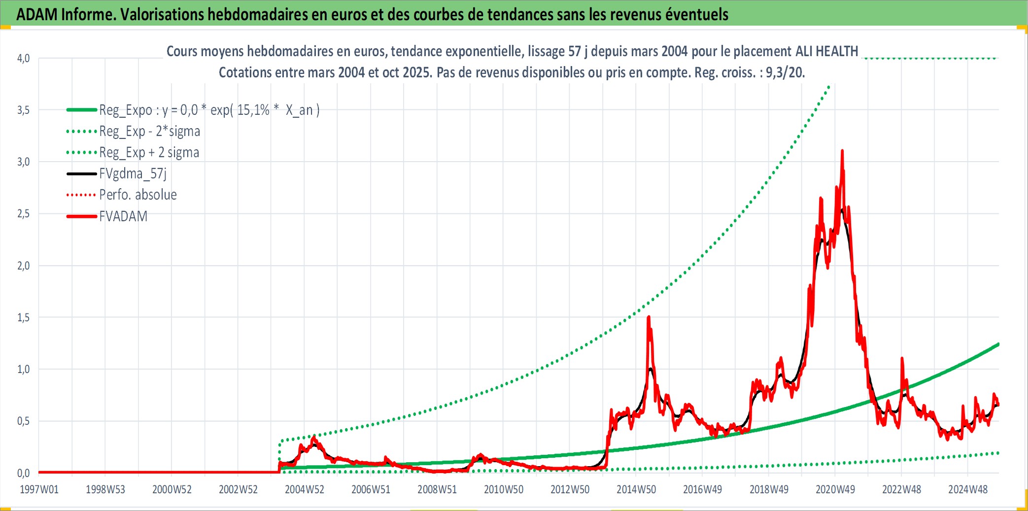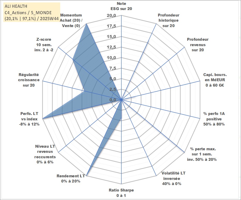 Site dédié aux investisseursPage dédiée sur site financeAnalyse des valorisations hebdomadaires de l'action ALI HEALTH. Cet actif est cote en HKD. Les valorisations sont en contrevaleur EURO et couvrent les semaines 2004W13 a 2025W44. Les revenus de cet actif financier ne sont pas connus car non existants ou non disponibles sur le site Yahoo Finance. La note ESG de cet actif n'est pas connue.