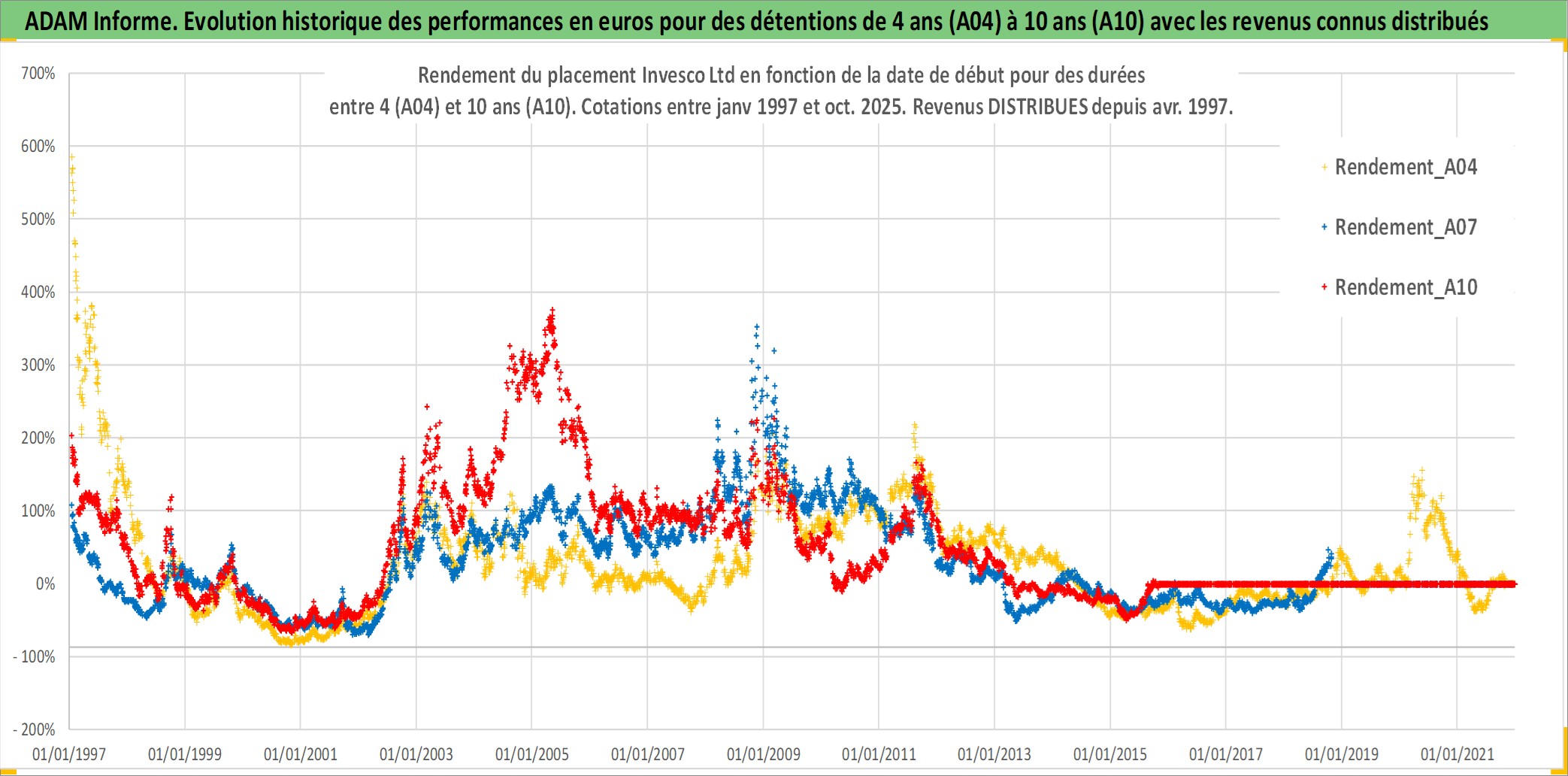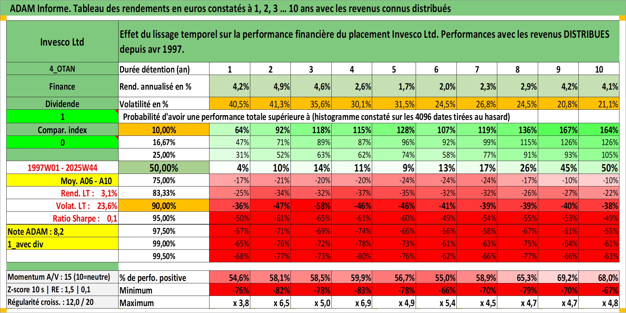 Site dédié aux investisseursPage dédiée sur site financeAnalyse des valorisations hebdomadaires de l'action Invesco Ltd. Cet actif est cote en USD. Les valorisations sont en contrevaleur EURO et couvrent les semaines 1997W01 a 2025W44. Les revenus de cet actif financier sont pris en compte depuis la semaine 1997W14. La note globale ESG de cet actif est estimee a 10.0 (apres rebasage entre 0 et 20).