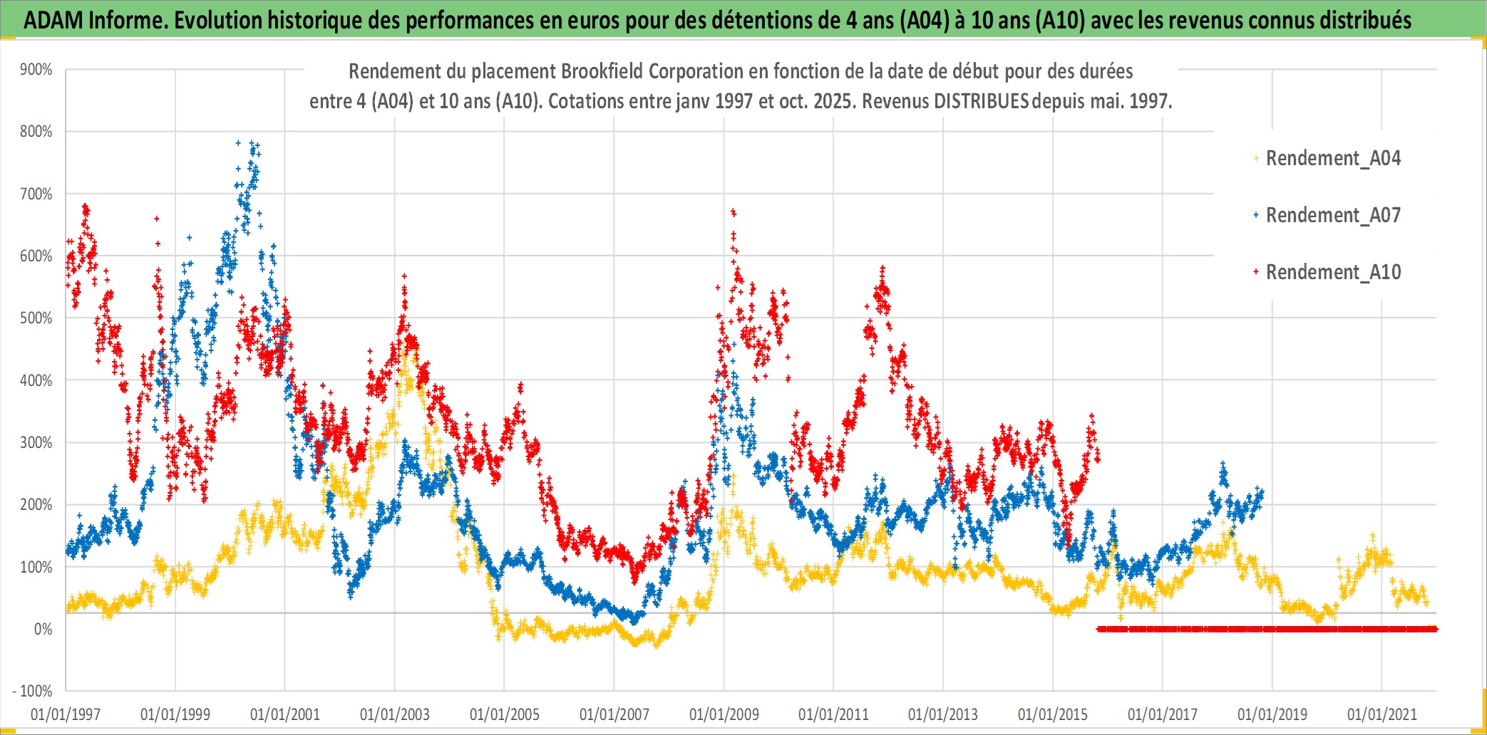 Site dédié aux investisseursPage dédiée sur site financeAnalyse des valorisations hebdomadaires de l'action Brookfield Corporation. Cet actif est cote en CAD. Les valorisations sont en contrevaleur EURO et couvrent les semaines 1997W01 a 2025W44. Les revenus de cet actif financier sont pris en compte depuis la semaine 1997W20. La note ESG de cet actif n'est pas connue.