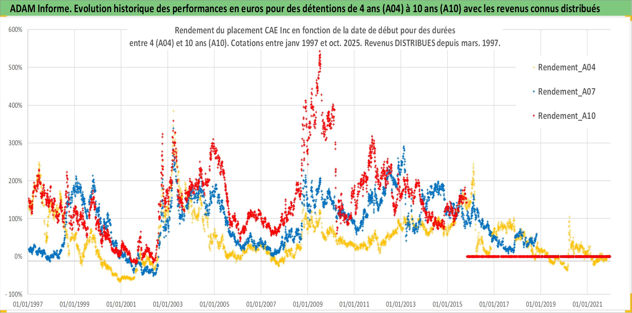 Site dédié aux investisseursPage dédiée sur site financeAnalyse des valorisations hebdomadaires de l'action CAE Inc. Cet actif est cote en CAD. Les valorisations sont en contrevaleur EURO et couvrent les semaines 1997W01 a 2025W44. Les revenus de cet actif financier sont pris en compte depuis la semaine 1997W11. La note ESG de cet actif n'est pas connue.