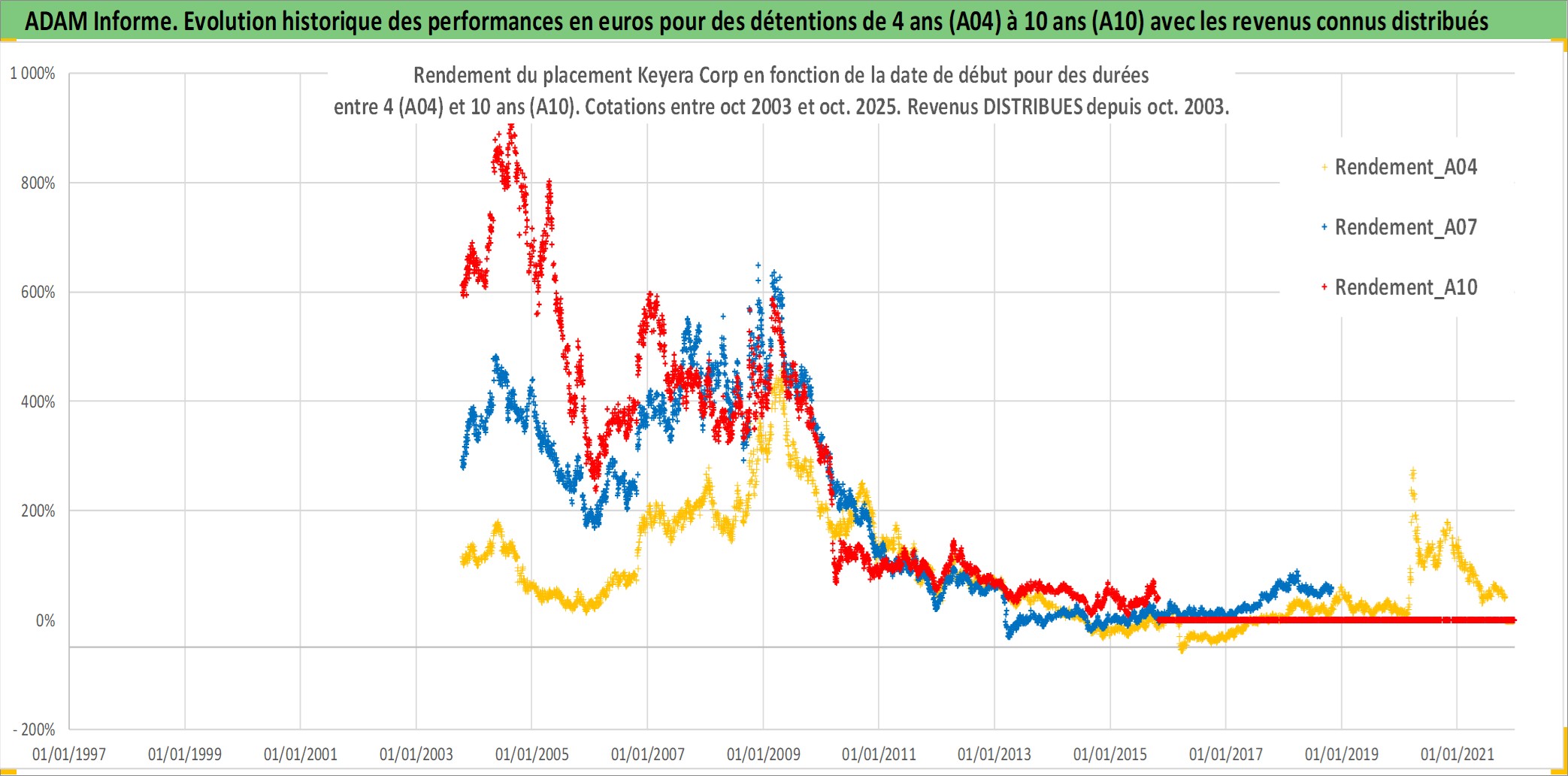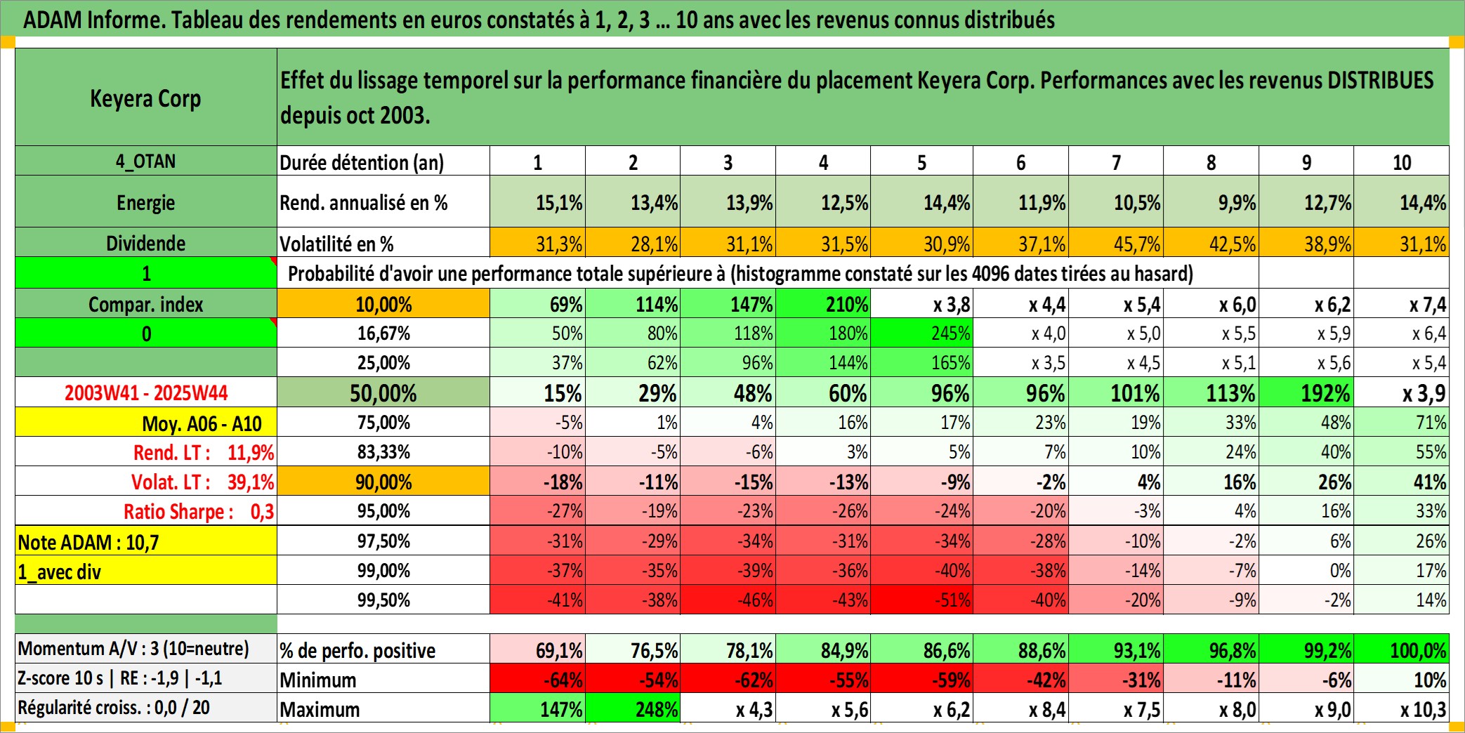Site dédié aux investisseursPage dédiée sur site financeAnalyse des valorisations hebdomadaires de l'action Keyera Corp. Cet actif est cote en CAD. Les valorisations sont en contrevaleur EURO et couvrent les semaines 2003W41 a 2025W44. Les revenus de cet actif financier sont pris en compte depuis la semaine 2003W44. La note globale ESG de cet actif est estimee a 9.0 (apres rebasage entre 0 et 20).