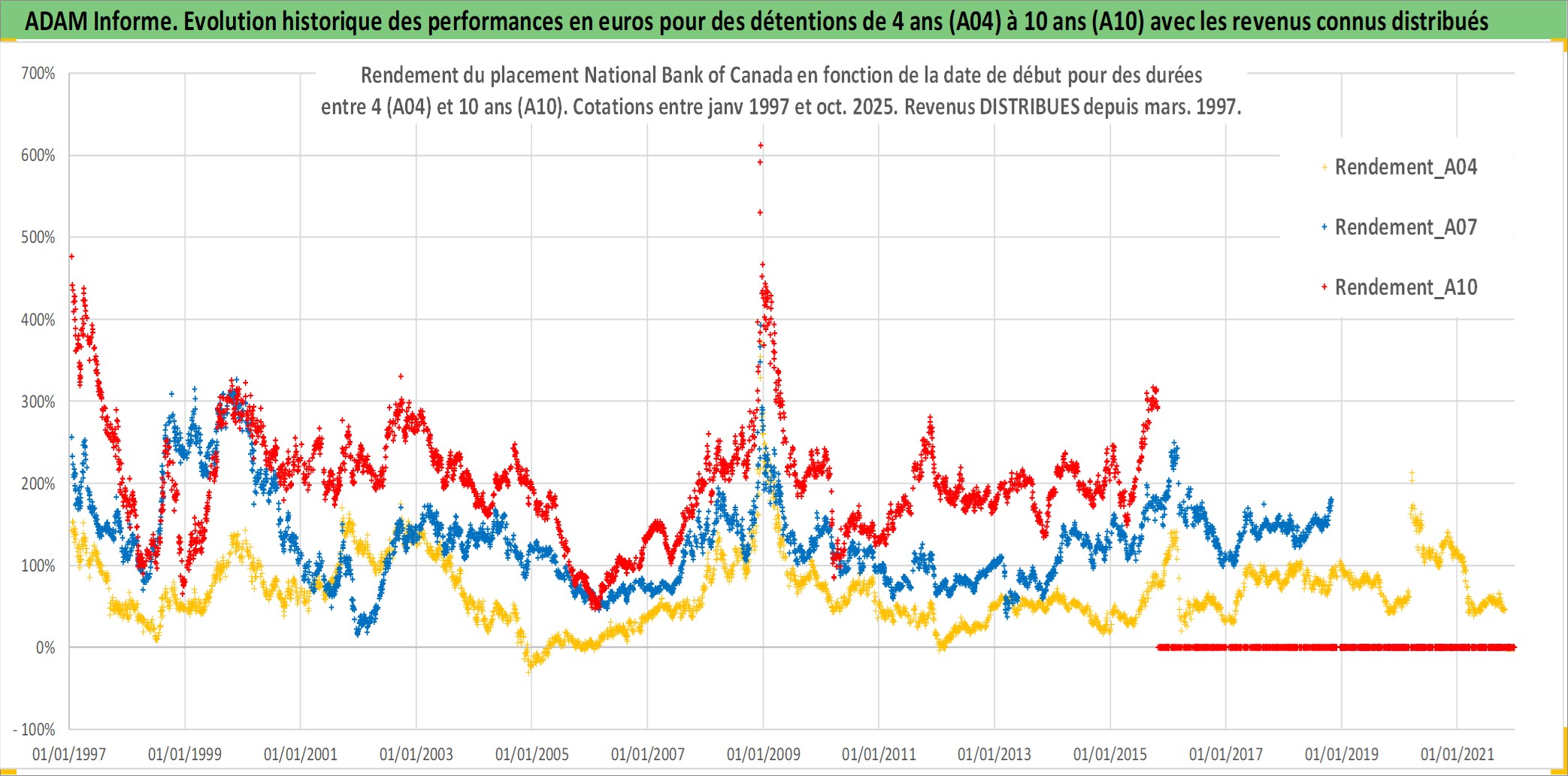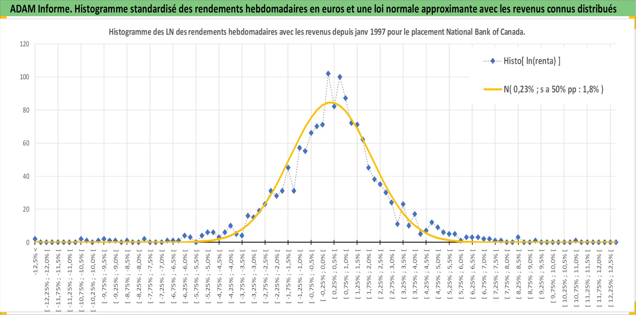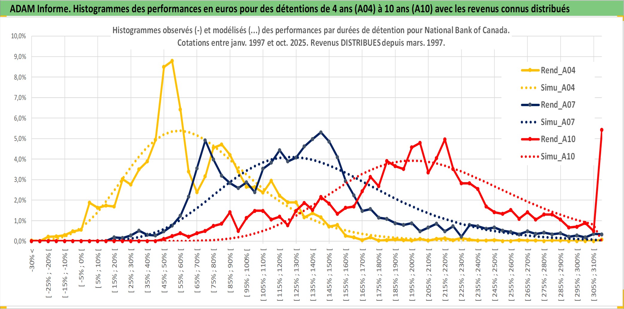 Site dédié aux investisseursPage dédiée sur site financeAnalyse des valorisations hebdomadaires de l'action National Bank of Canada. Cet actif est cote en CAD. Les valorisations sont en contrevaleur EURO et couvrent les semaines 1997W01 a 2025W44. Les revenus de cet actif financier sont pris en compte depuis la semaine 1997W13. La note globale ESG de cet actif est estimee a 13.0 (apres rebasage entre 0 et 20).