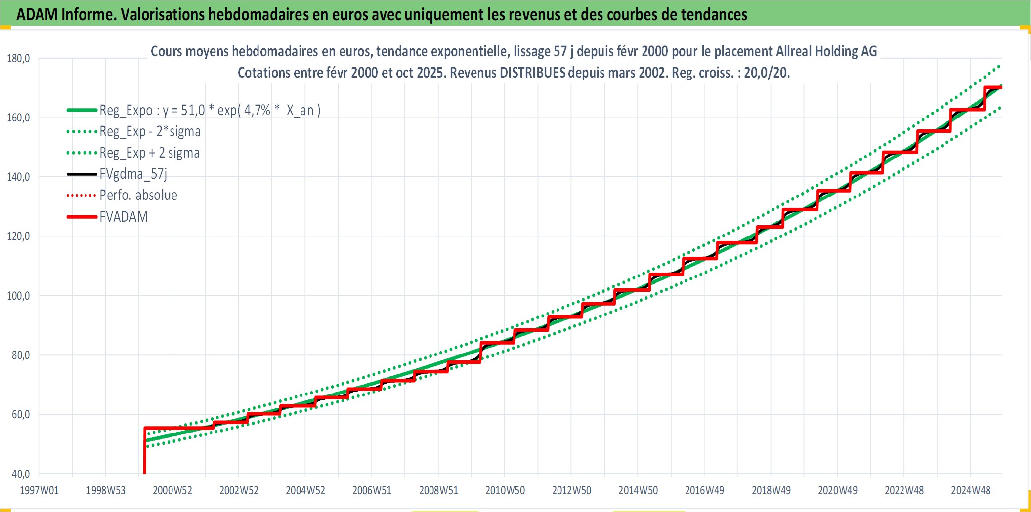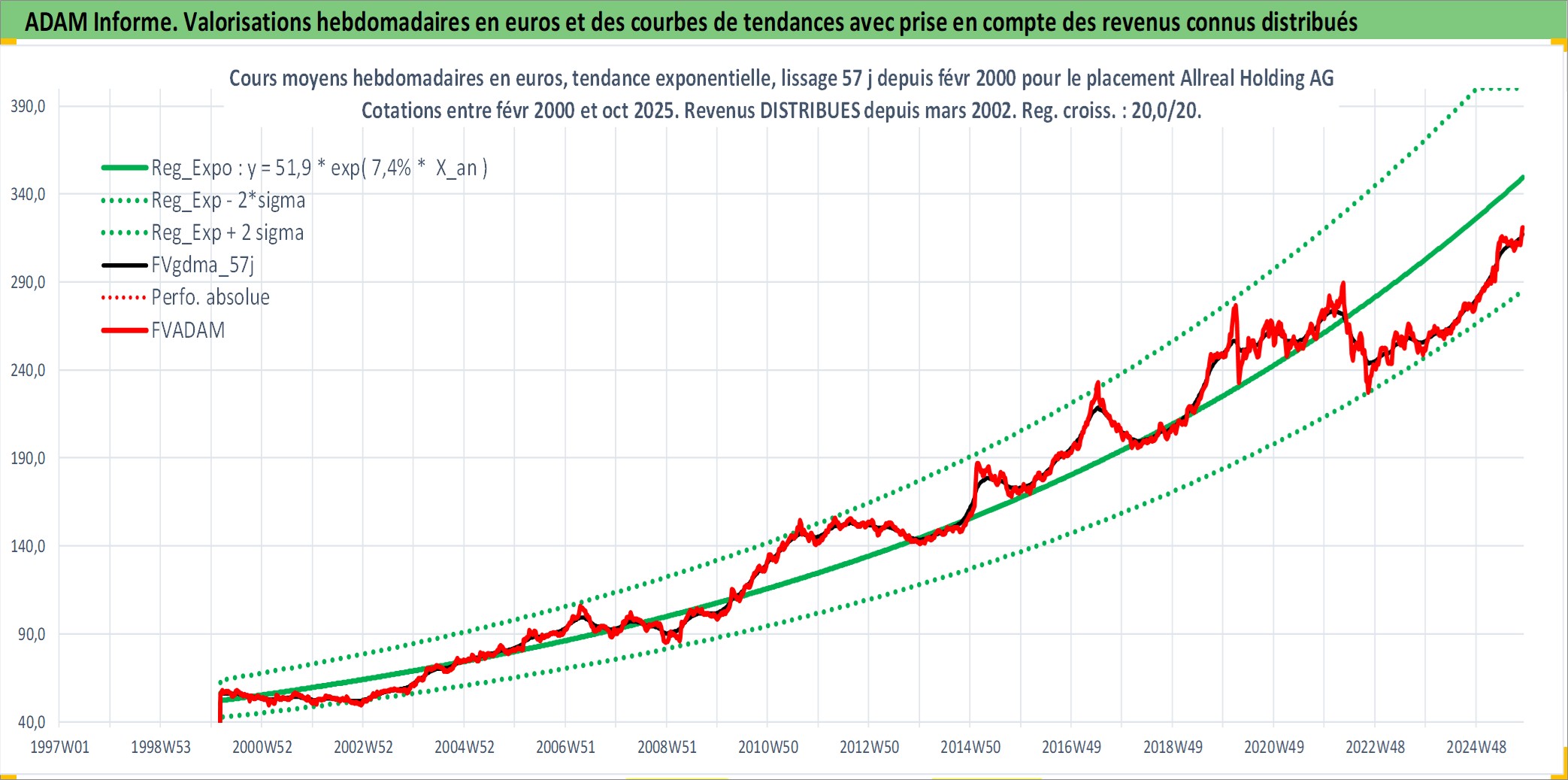 Site dédié aux investisseursPage dédiée sur site financeAnalyse des valorisations hebdomadaires de l'action Allreal Holding AG. Cet actif est cote en CHF. Les valorisations sont en contrevaleur EURO et couvrent les semaines 2000W09 a 2025W44. Les revenus de cet actif financier sont pris en compte depuis la semaine 2002W13. La note ESG de cet actif n'est pas connue.
