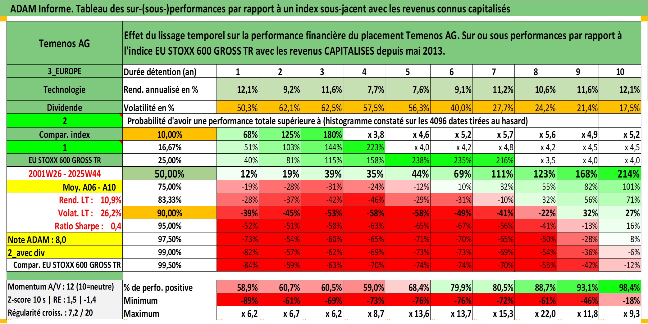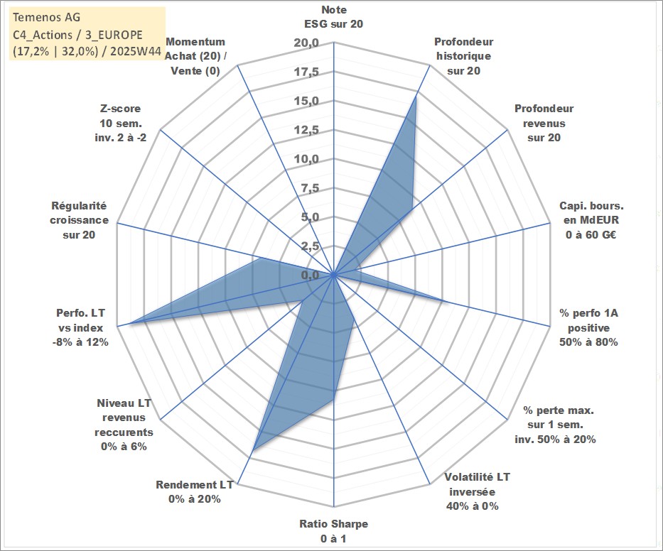 Site dédié aux investisseursPage dédiée sur site financeAnalyse des valorisations hebdomadaires de l'action Temenos AG. Cet actif est cote en CHF. Les valorisations sont en contrevaleur EURO et couvrent les semaines 2001W26 a 2025W44. Les revenus de cet actif financier sont pris en compte depuis la semaine 2013W22. La note ESG de cet actif n'est pas connue.