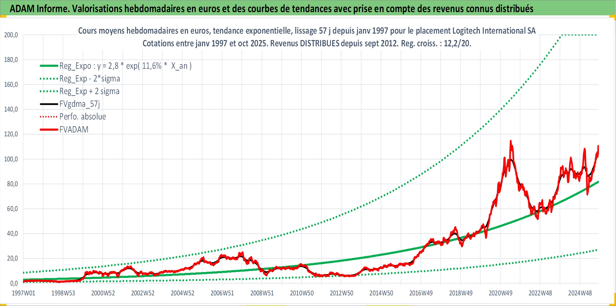 Site dédié aux investisseursPage dédiée sur site financeAnalyse des valorisations hebdomadaires de l'action Logitech International SA. Cet actif est cote en USD. Les valorisations sont en contrevaleur EURO et couvrent les semaines 1997W01 a 2025W44. Les revenus de cet actif financier sont pris en compte depuis la semaine 2012W37. La note ESG de cet actif n'est pas connue.