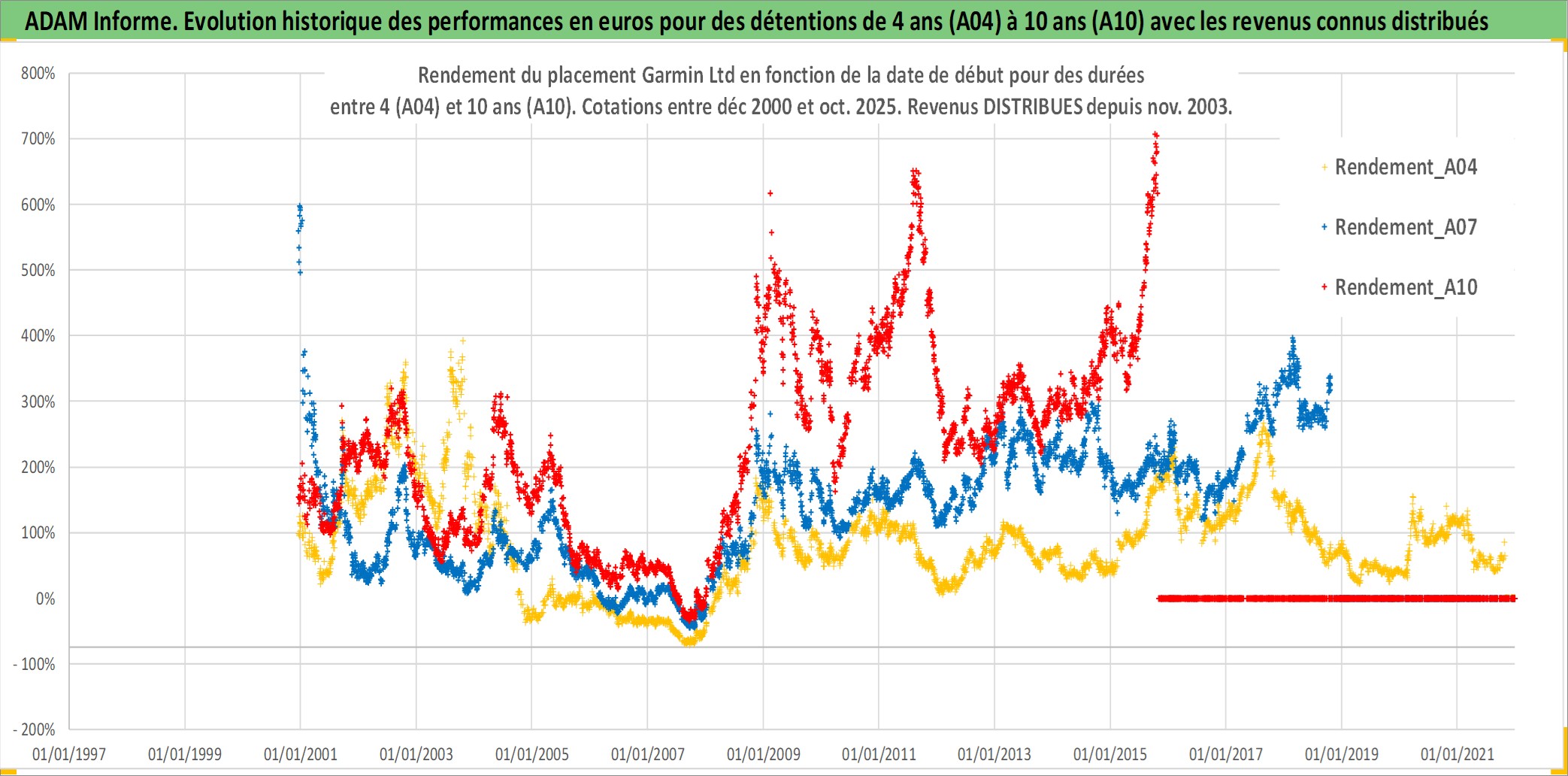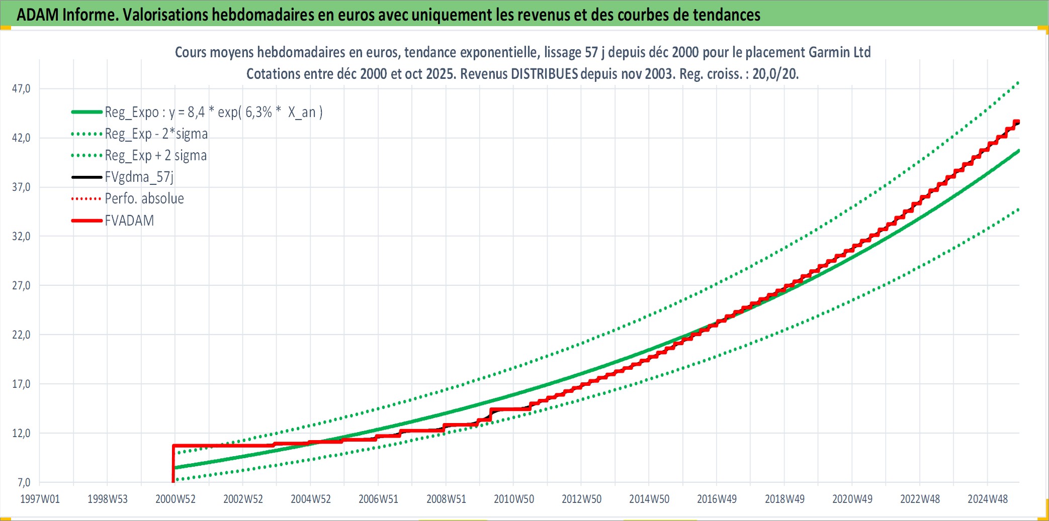 Site dédié aux investisseursPage dédiée sur site financeAnalyse des valorisations hebdomadaires de l'action Garmin Ltd. Cet actif est cote en USD. Les valorisations sont en contrevaleur EURO et couvrent les semaines 2000W49 a 2025W44. Les revenus de cet actif financier sont pris en compte depuis la semaine 2003W48. La note globale ESG de cet actif est estimee a 11.0 (apres rebasage entre 0 et 20).