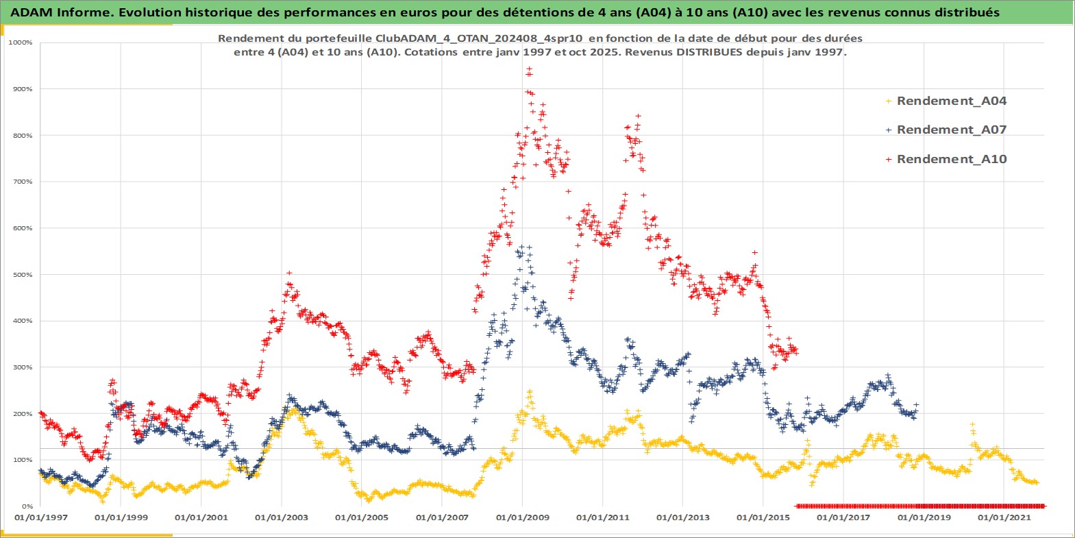 Site dédié aux investisseursPage dédiée sur site financeAnalyse des valorisations hebdomadaires du portefeuille ClubADAM_4_OTAN_202408_4spr10_22actifs avec un profil P6_PurActions. Ce portefeuille est cote en EUR. Les valorisations couvrent les semaines 1997W01 a 2025W44. Les revenus de cet actif financier sont pris en compte depuis la semaine 1997W01. La note globale ESG de cet actif est estimee a 11.0 (apres rebasage entre 0 et 20).