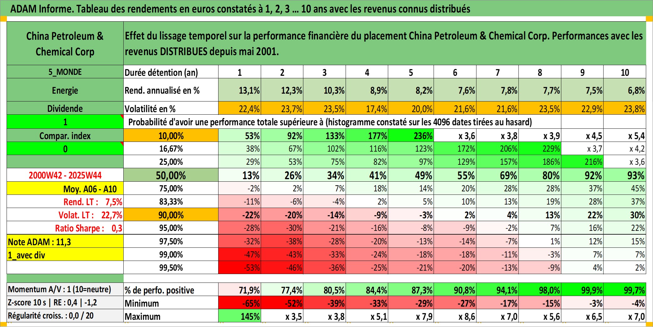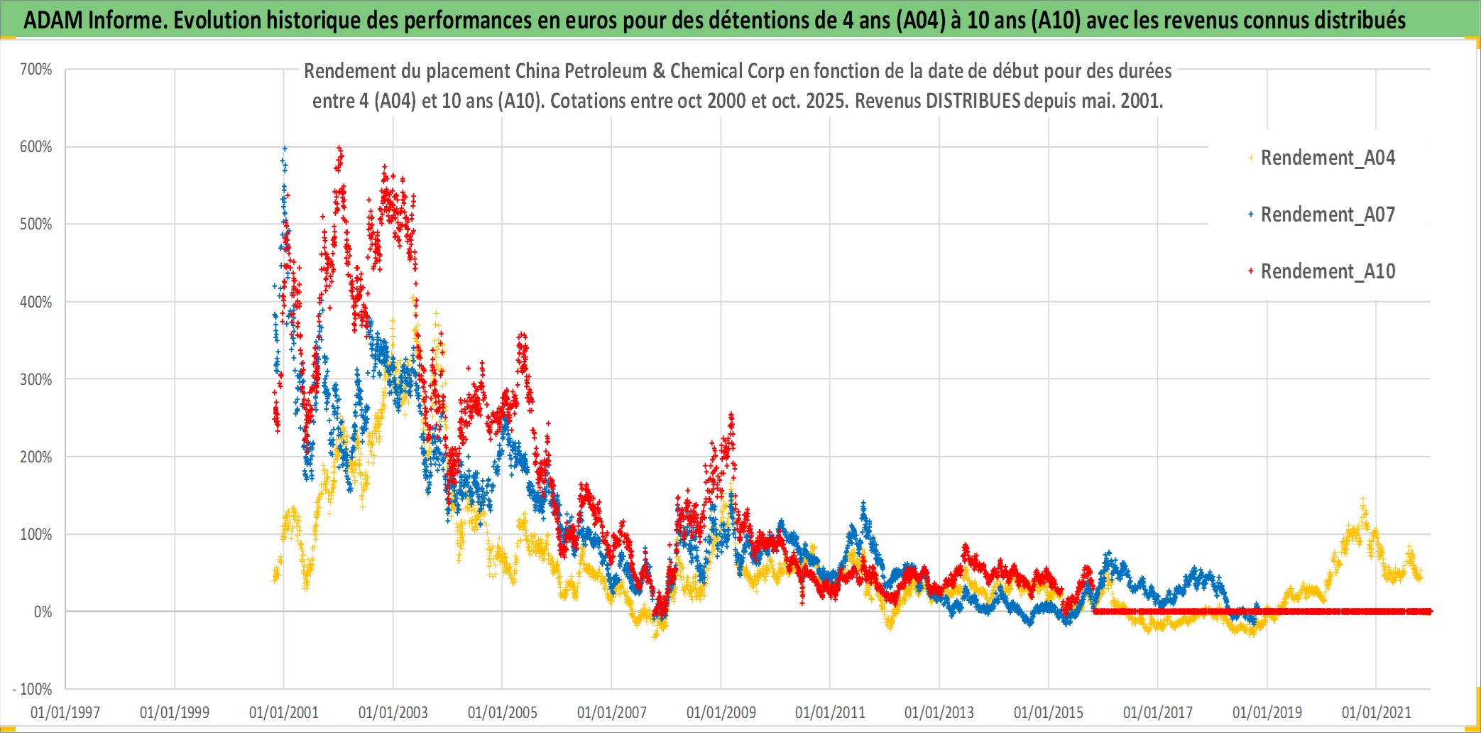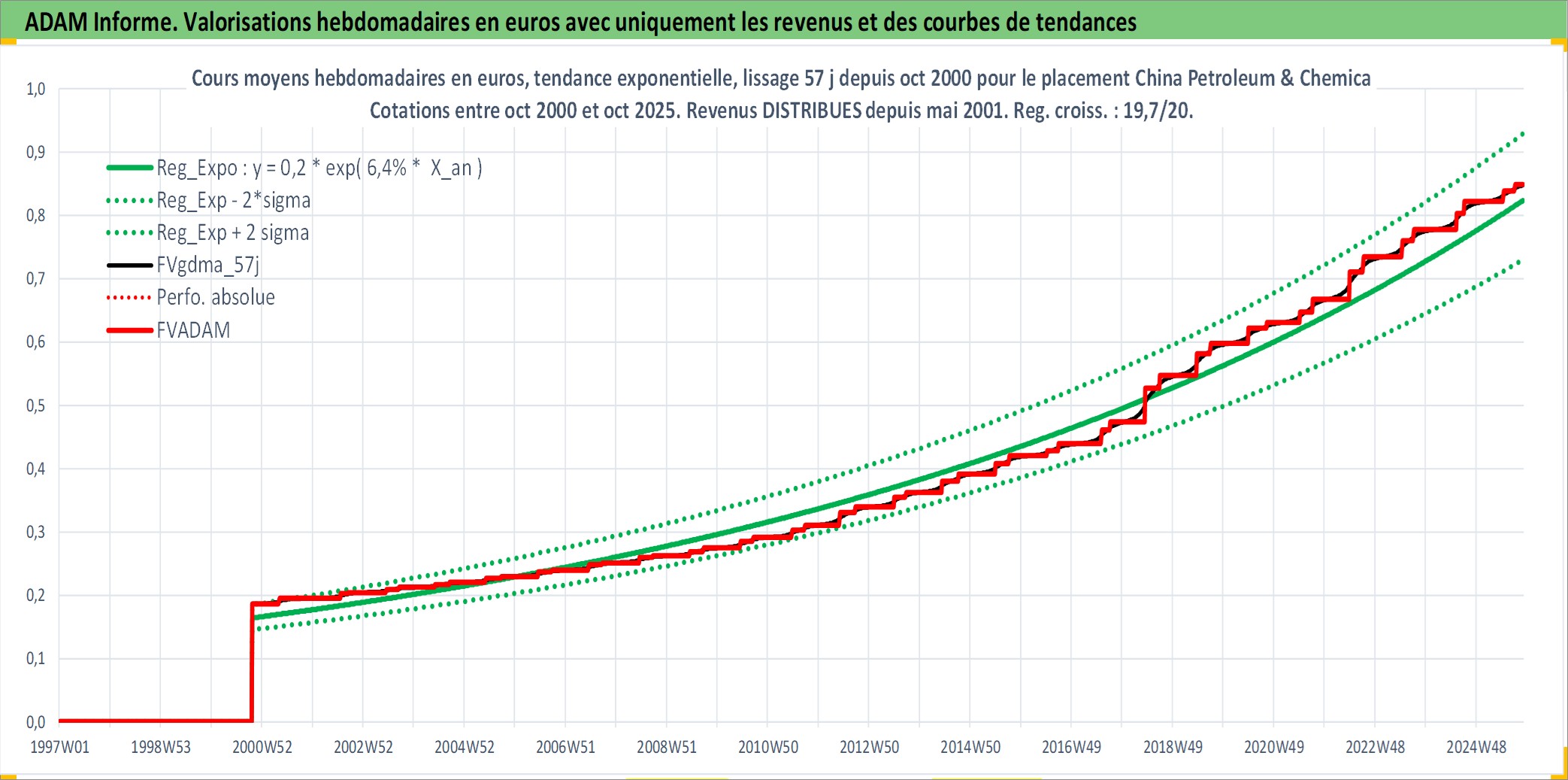 Site dédié aux investisseursPage dédiée sur site financeAnalyse des valorisations hebdomadaires de l'action China Petroleum & Chemical Corp. Cet actif est cote en HKD. Les valorisations sont en contrevaleur EURO et couvrent les semaines 2000W42 a 2025W44. Les revenus de cet actif financier sont pris en compte depuis la semaine 2001W18. La note ESG de cet actif n'est pas connue.