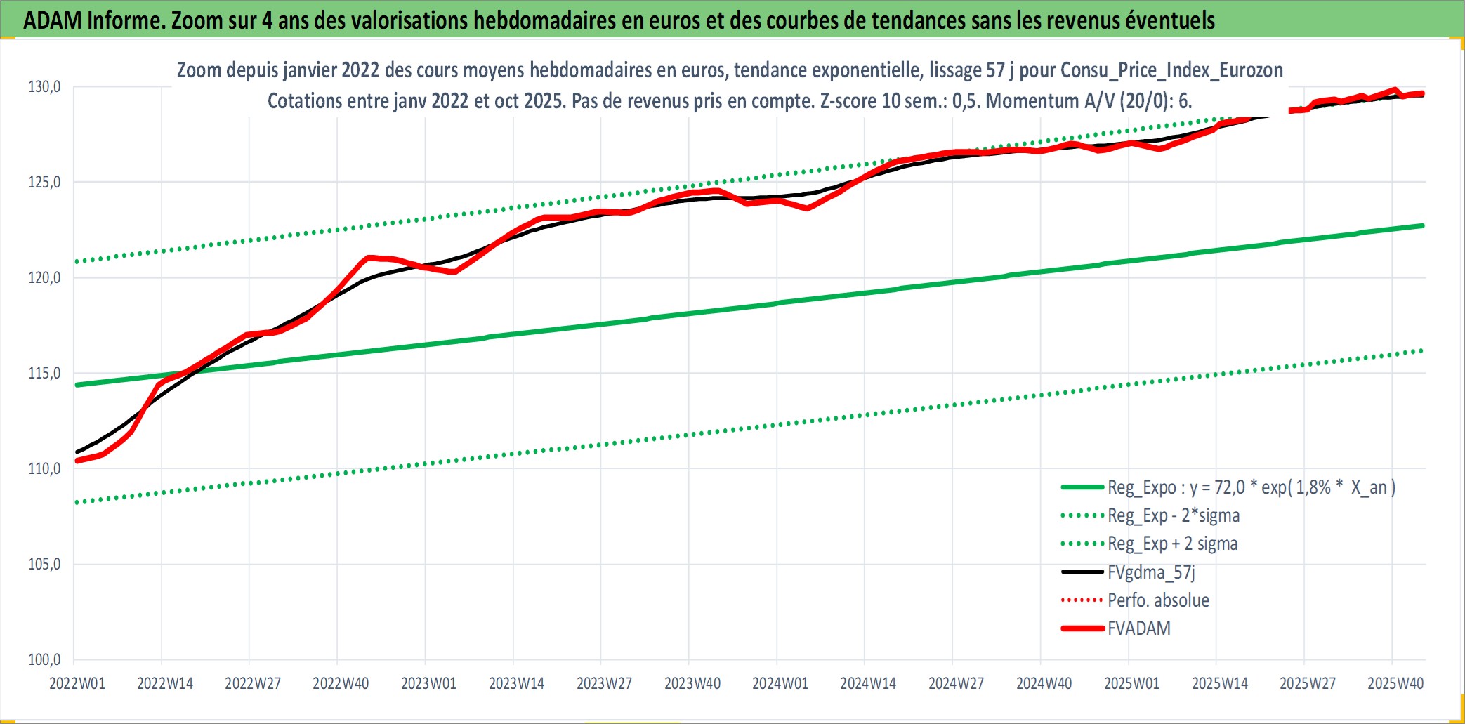 Site dédié aux investisseursPage dédiée sur site financeAnalyse des valorisations hebdomadaires de l'action Consu_Price_Index_Eurozone. Cet actif est cote en EUR. Les valorisations couvrent les semaines 1997W01 a 2025W44. Les revenus de cet actif financier ne sont pas connus car non existants ou non disponibles sur le site Yahoo Finance. La note ESG de cet actif n'est pas connue.