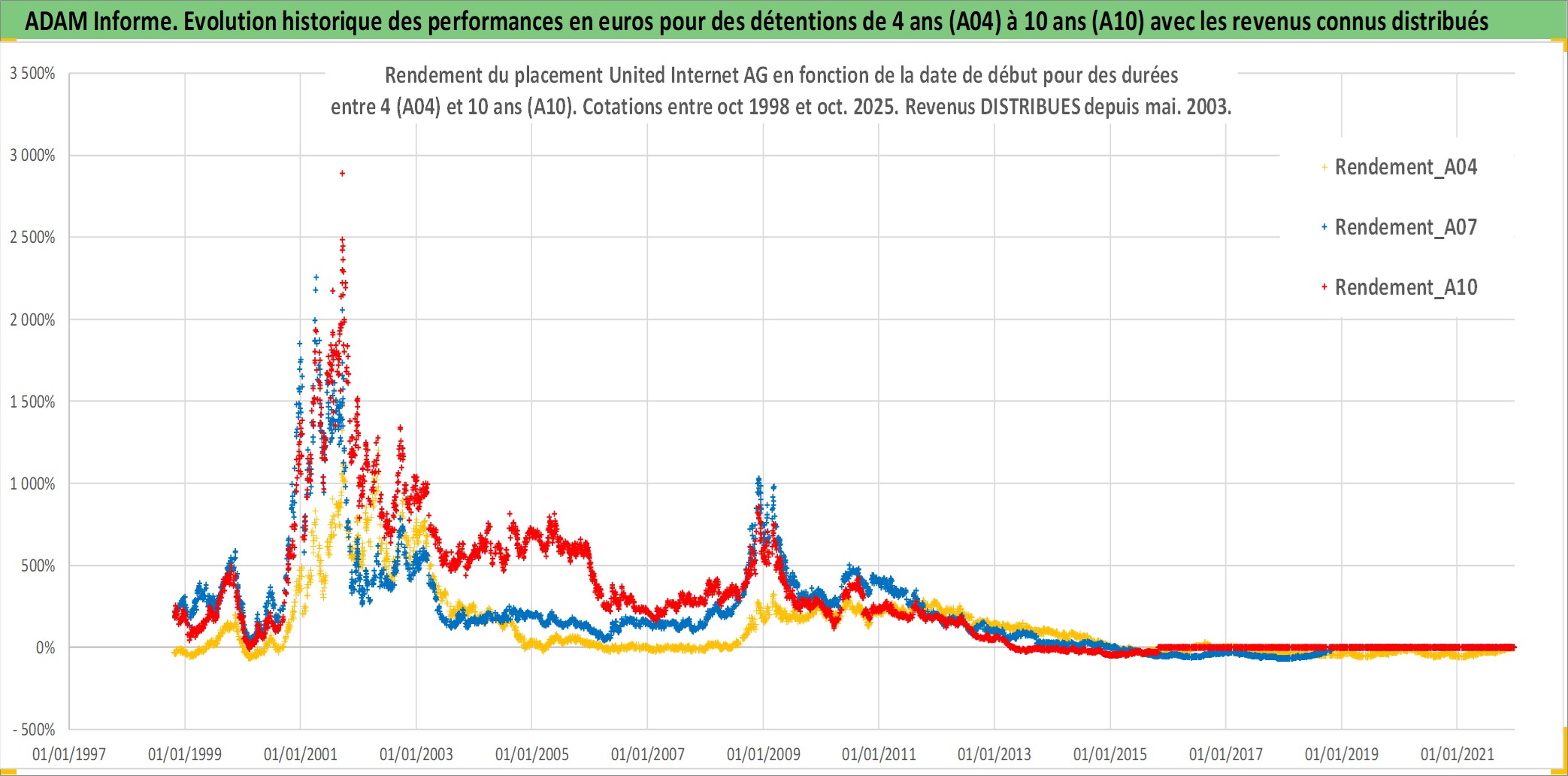 Site dédié aux investisseursPage dédiée sur site financeAnalyse des valorisations hebdomadaires de l'action United Internet AG. Cet actif est cote en EUR. Les valorisations couvrent les semaines 1998W42 a 2025W44. Les revenus de cet actif financier sont pris en compte depuis la semaine 2003W21. La note globale ESG de cet actif est estimee a 9.0 (apres rebasage entre 0 et 20).