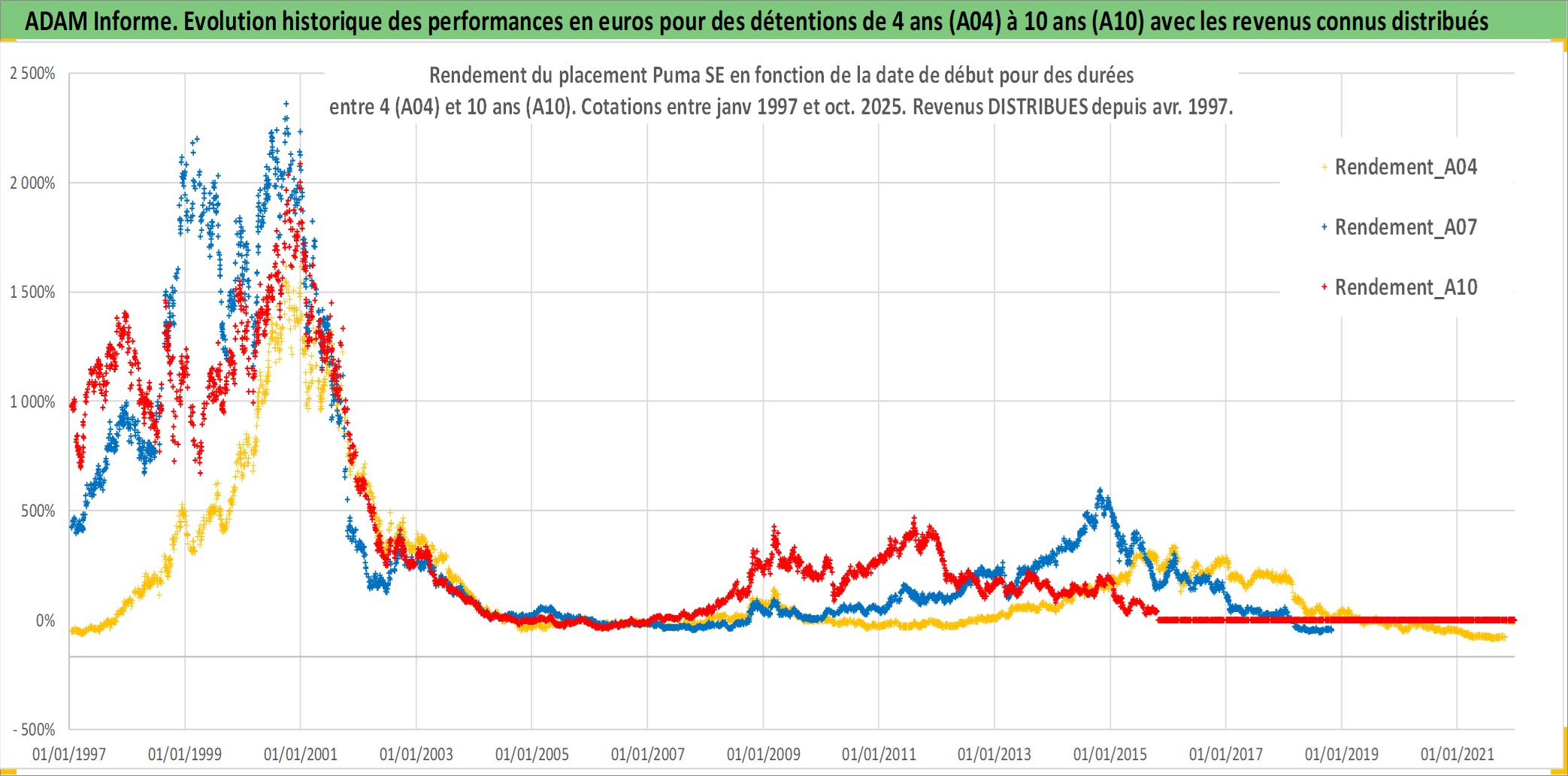 Site dédié aux investisseursPage dédiée sur site financeAnalyse des valorisations hebdomadaires de l'action Puma SE. Cet actif est cote en EUR. Les valorisations couvrent les semaines 1997W01 a 2025W44. Les revenus de cet actif financier sont pris en compte depuis la semaine 1997W17. La note ESG de cet actif n'est pas connue.