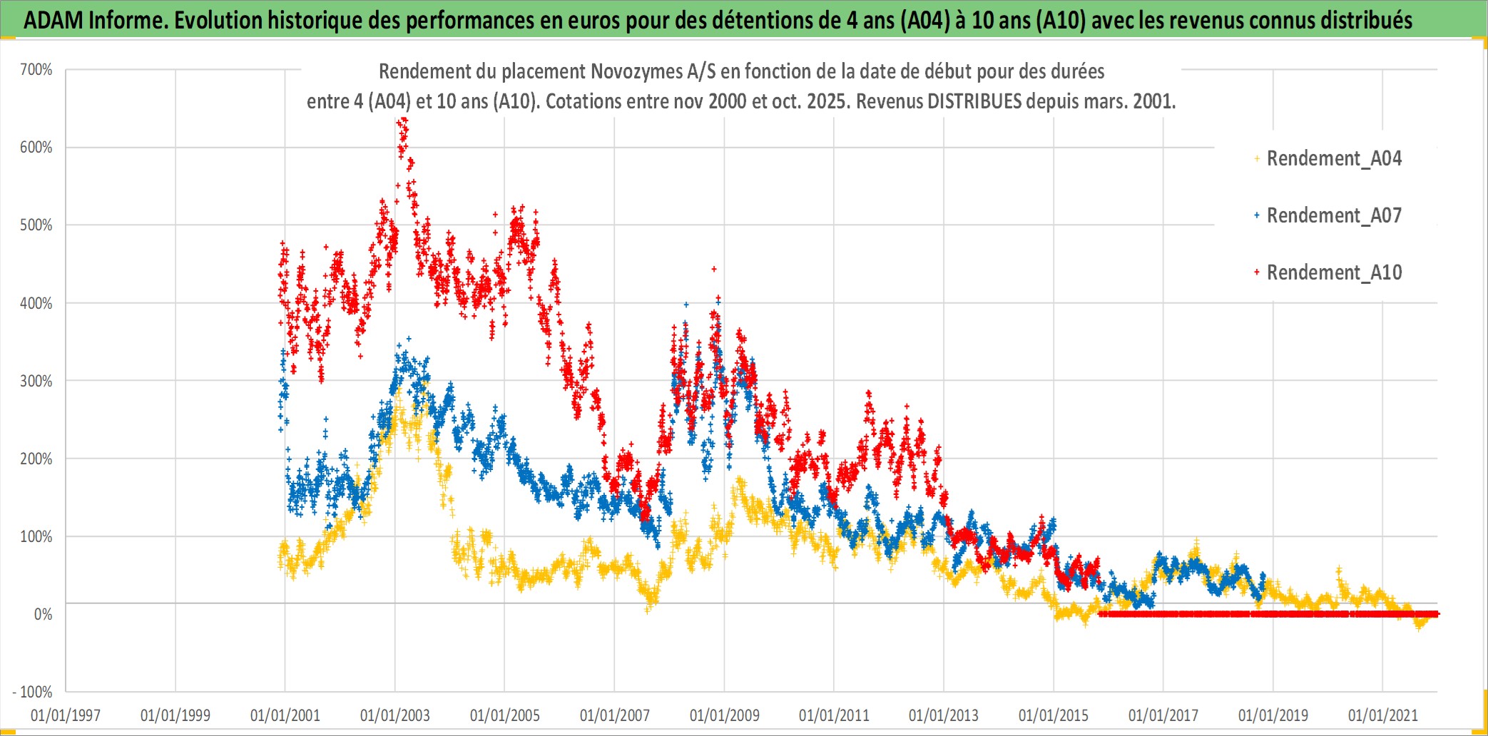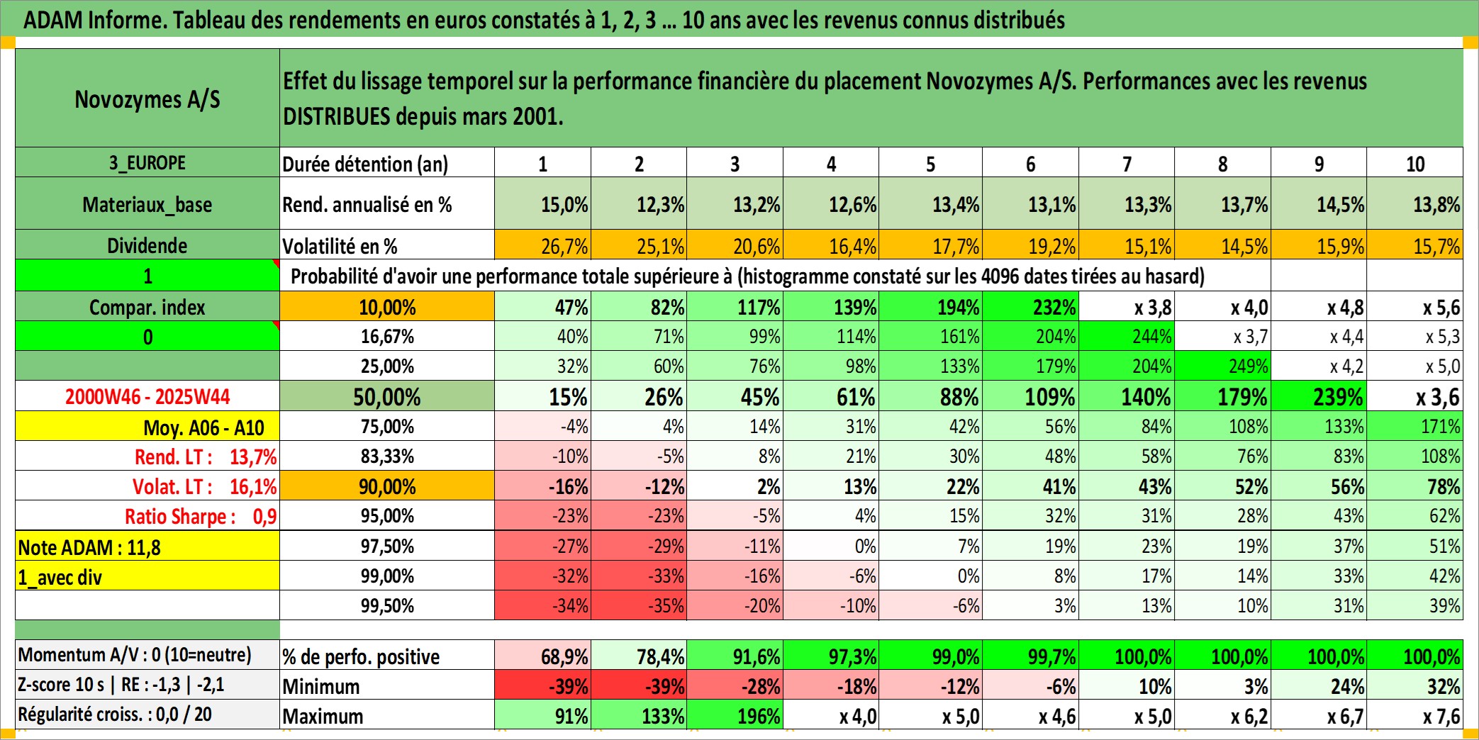 Site dédié aux investisseursPage dédiée sur site financeAnalyse des valorisations hebdomadaires de l'action Novozymes A/S. Cet actif est cote en DKK. Les valorisations sont en contrevaleur EURO et couvrent les semaines 2000W46 a 2025W44. Les revenus de cet actif financier sont pris en compte depuis la semaine 2001W12. La note globale ESG de cet actif est estimee a 13.0 (apres rebasage entre 0 et 20).