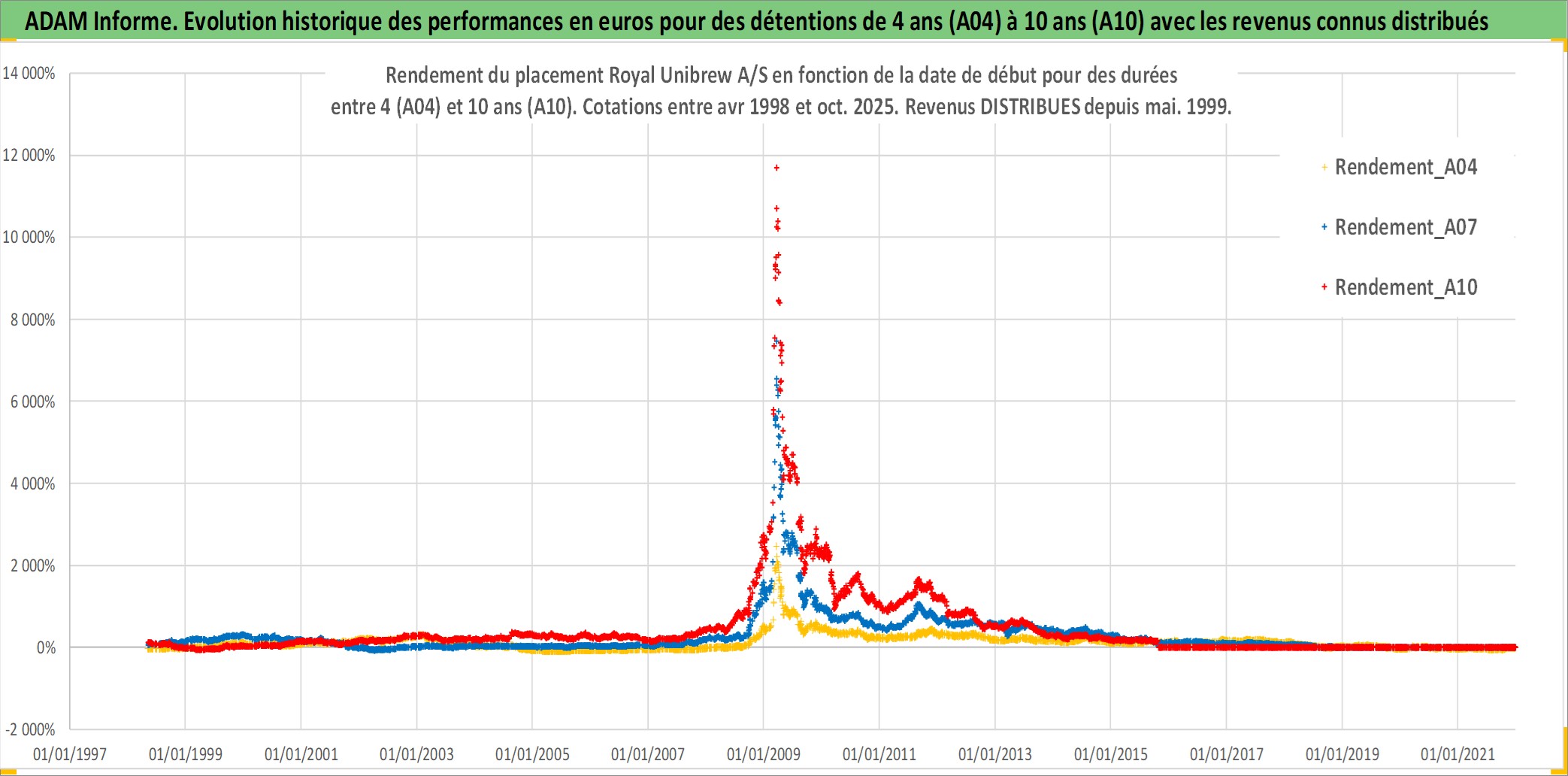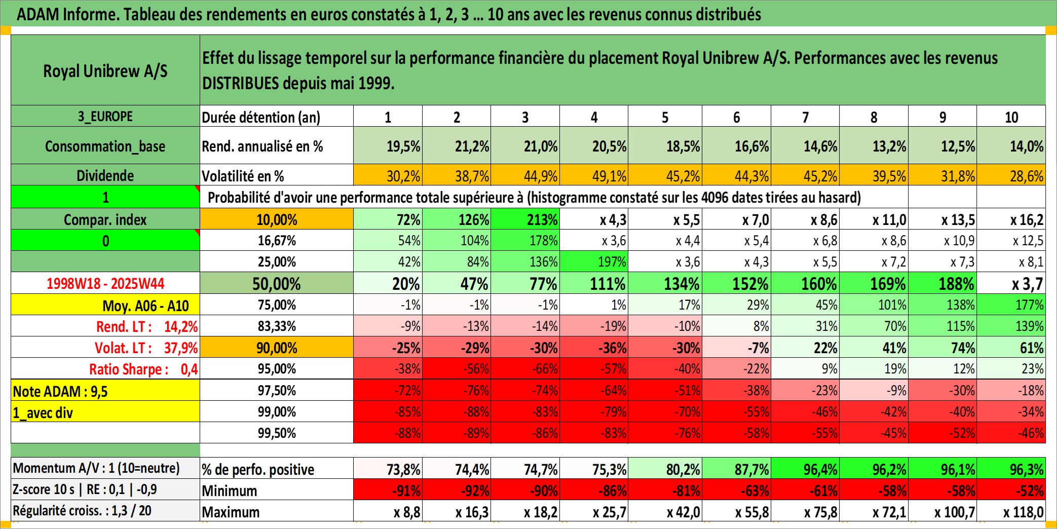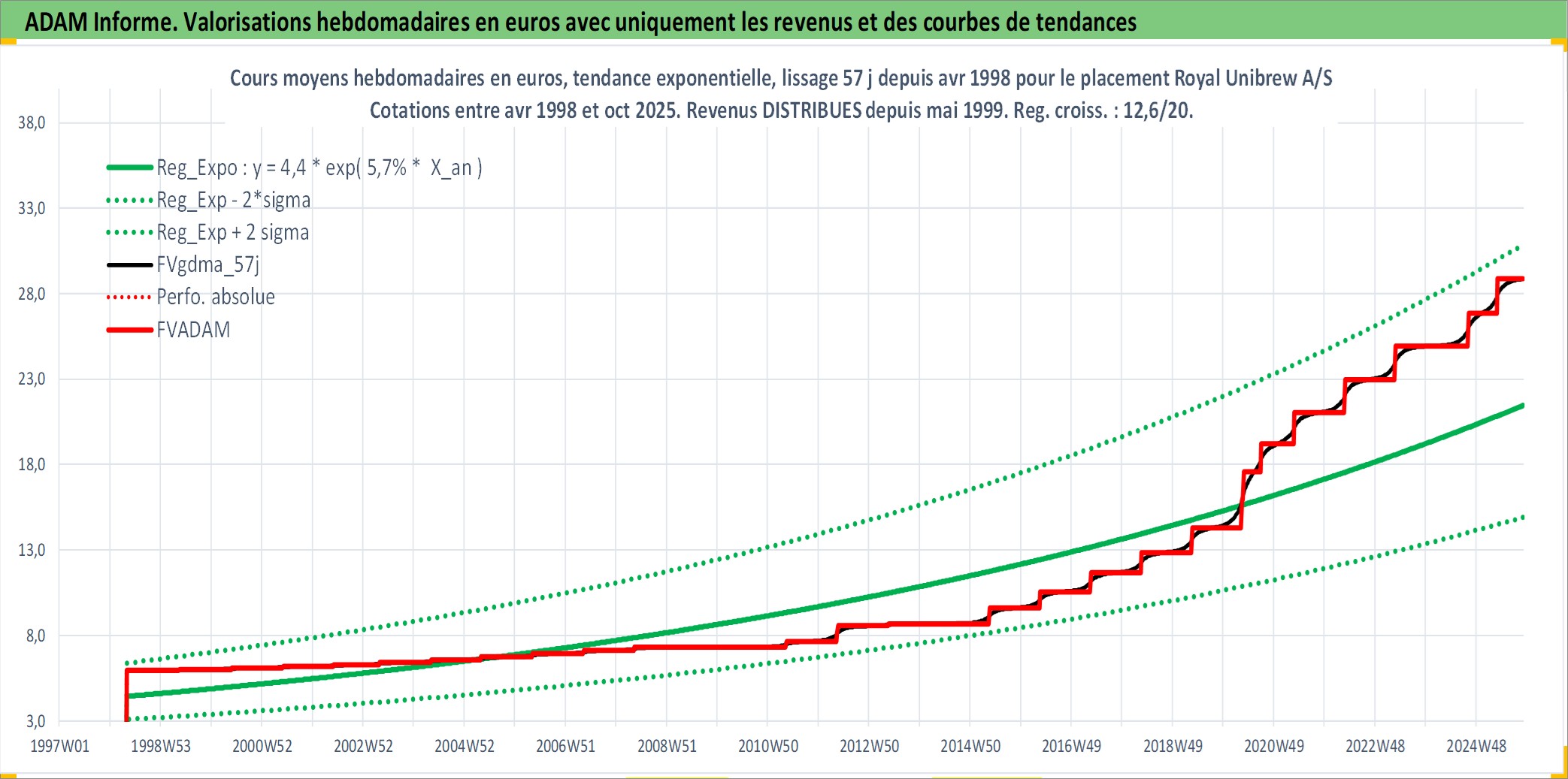 Site dédié aux investisseursPage dédiée sur site financeAnalyse des valorisations hebdomadaires de l'action Royal Unibrew A/S. Cet actif est cote en DKK. Les valorisations sont en contrevaleur EURO et couvrent les semaines 1998W18 a 2025W44. Les revenus de cet actif financier sont pris en compte depuis la semaine 1999W19. La note ESG de cet actif n'est pas connue.