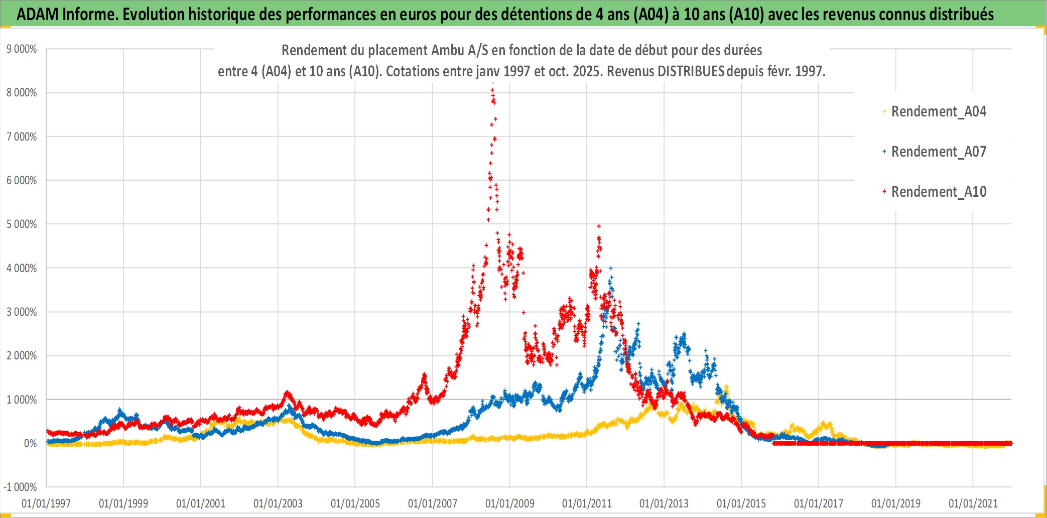 Site dédié aux investisseursPage dédiée sur site financeAnalyse des valorisations hebdomadaires de l'action Ambu A/S. Cet actif est cote en DKK. Les valorisations sont en contrevaleur EURO et couvrent les semaines 1997W01 a 2025W44. Les revenus de cet actif financier sont pris en compte depuis la semaine 1997W06. La note ESG de cet actif n'est pas connue.