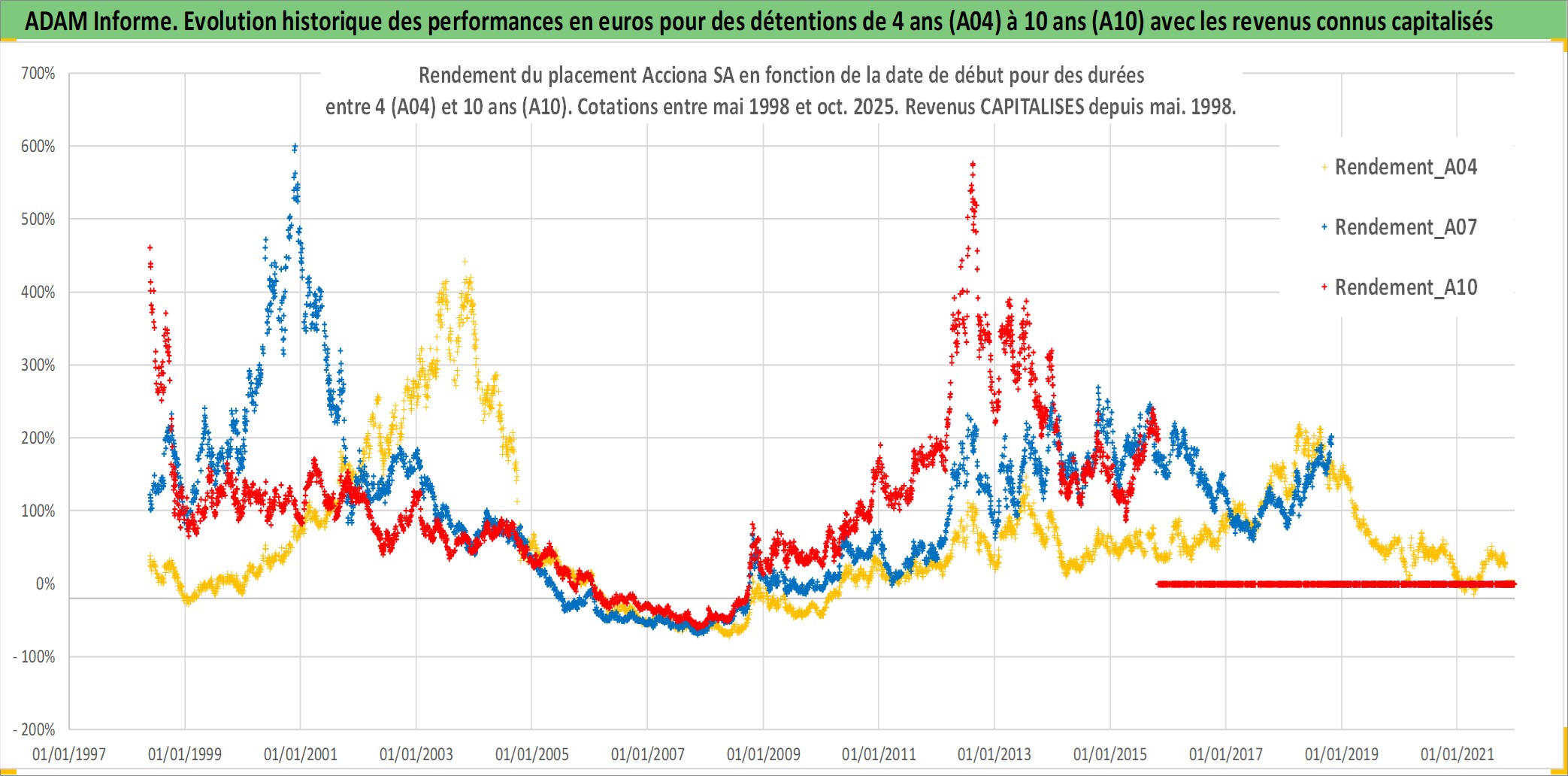 Site dédié aux investisseursPage dédiée sur site financeAnalyse des valorisations hebdomadaires de l'action Acciona SA. Cet actif est cote en EUR. Les valorisations couvrent les semaines 1998W20 a 2025W44. Les revenus de cet actif financier sont pris en compte depuis la semaine 1998W20. La note ESG de cet actif n'est pas connue.