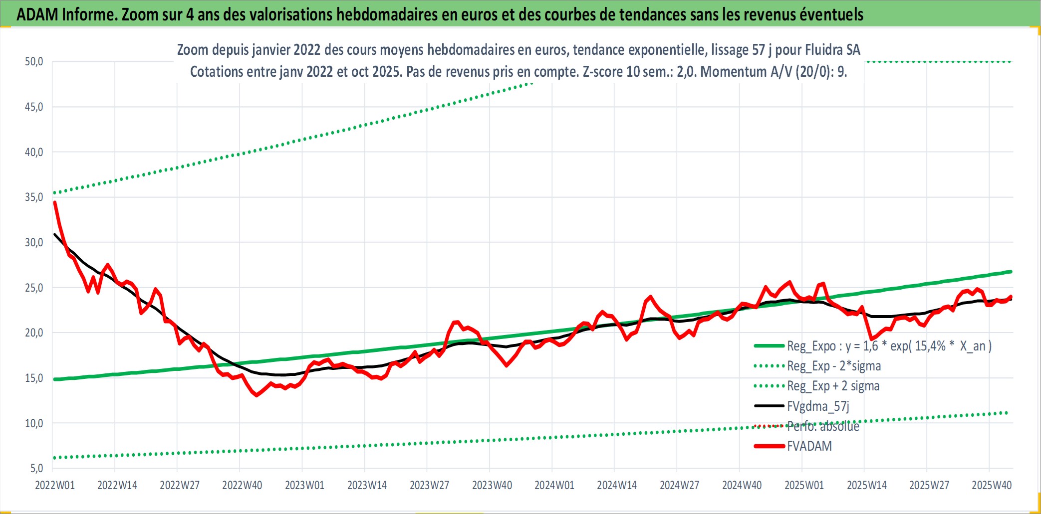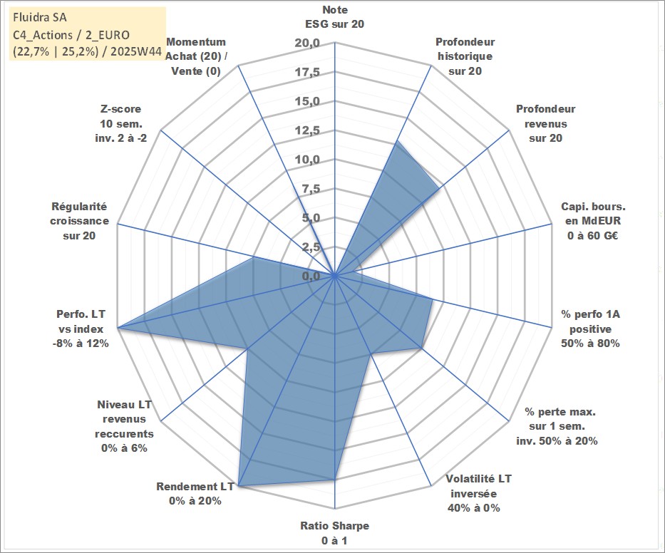 Site dédié aux investisseursPage dédiée sur site financeAnalyse des valorisations hebdomadaires de l'action Fluidra SA. Cet actif est cote en EUR. Les valorisations couvrent les semaines 2007W44 a 2025W44. Les revenus de cet actif financier sont pris en compte depuis la semaine 2008W24. La note ESG de cet actif n'est pas connue.
