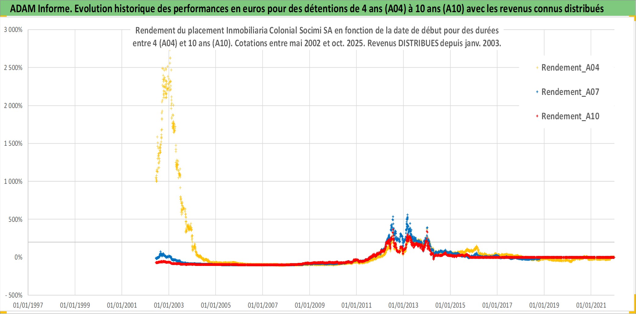 Site dédié aux investisseursPage dédiée sur site financeAnalyse des valorisations hebdomadaires de l'action Inmobiliaria Colonial Socimi SA. Cet actif est cote en EUR. Les valorisations couvrent les semaines 2002W22 a 2025W44. Les revenus de cet actif financier sont pris en compte depuis la semaine 2003W05. La note ESG de cet actif n'est pas connue.