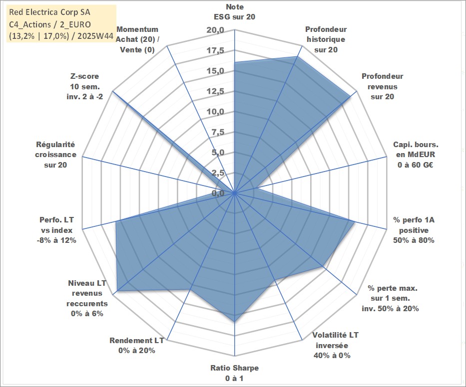 Site dédié aux investisseursPage dédiée sur site financeAnalyse des valorisations hebdomadaires de l'action Red Electrica Corp SA. Cet actif est cote en EUR. Les valorisations couvrent les semaines 1999W27 a 2025W44. Les revenus de cet actif financier sont pris en compte depuis la semaine 1999W47. La note globale ESG de cet actif est estimee a 16.0 (apres rebasage entre 0 et 20).