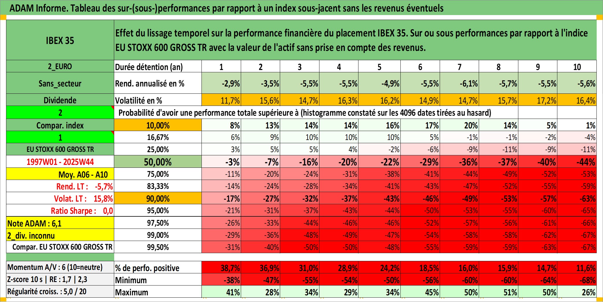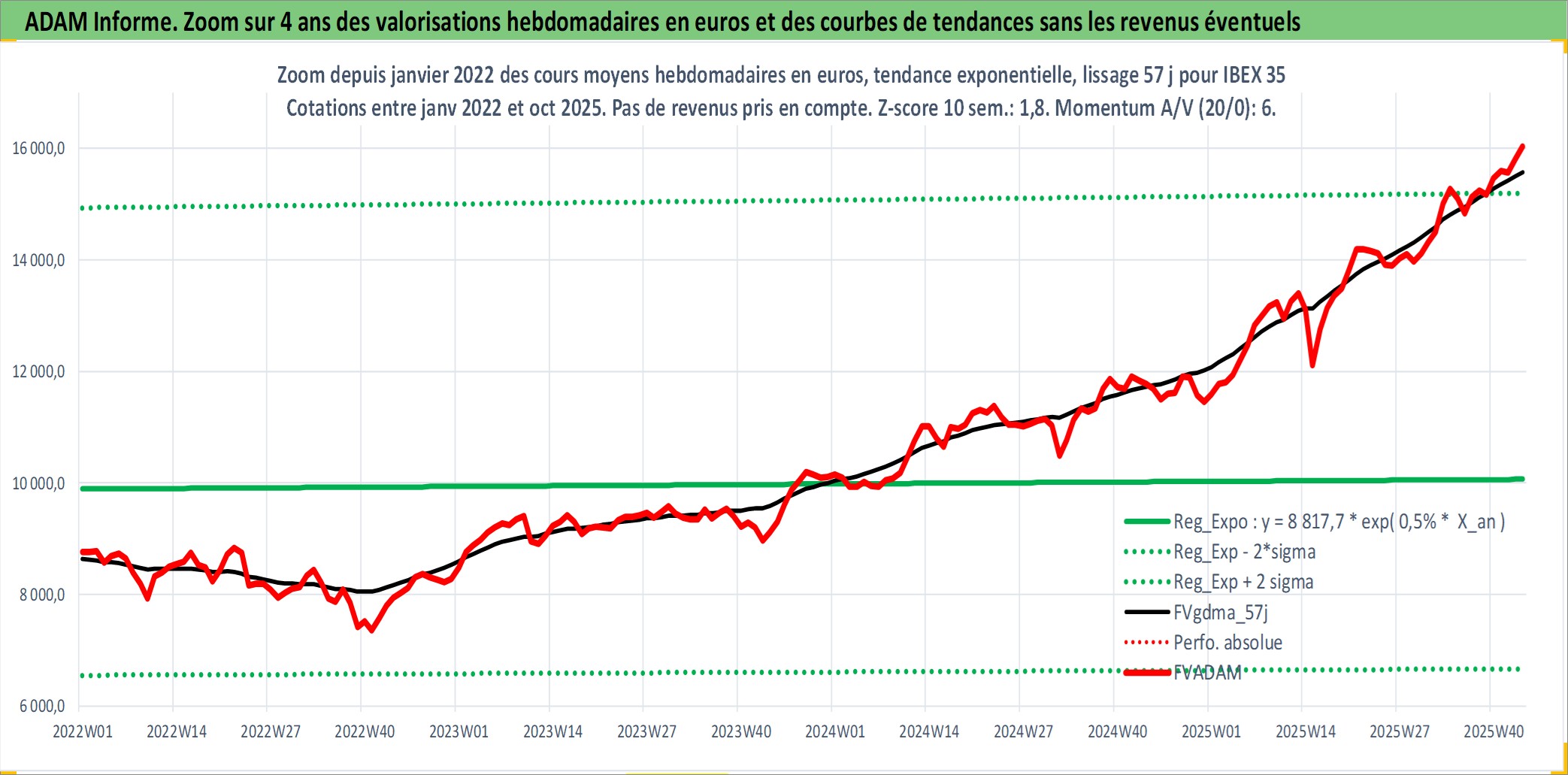 Site dédié aux investisseursPage dédiée sur site financeAnalyse des valorisations hebdomadaires de l'actif IBEX 35. Cet actif est cote en EUR. Les valorisations couvrent les semaines 1997W01 a 2025W44. Les revenus de cet actif financier ne sont pas connus car non existants ou non disponibles sur le site Yahoo Finance. La note ESG de cet actif n'est pas connue.