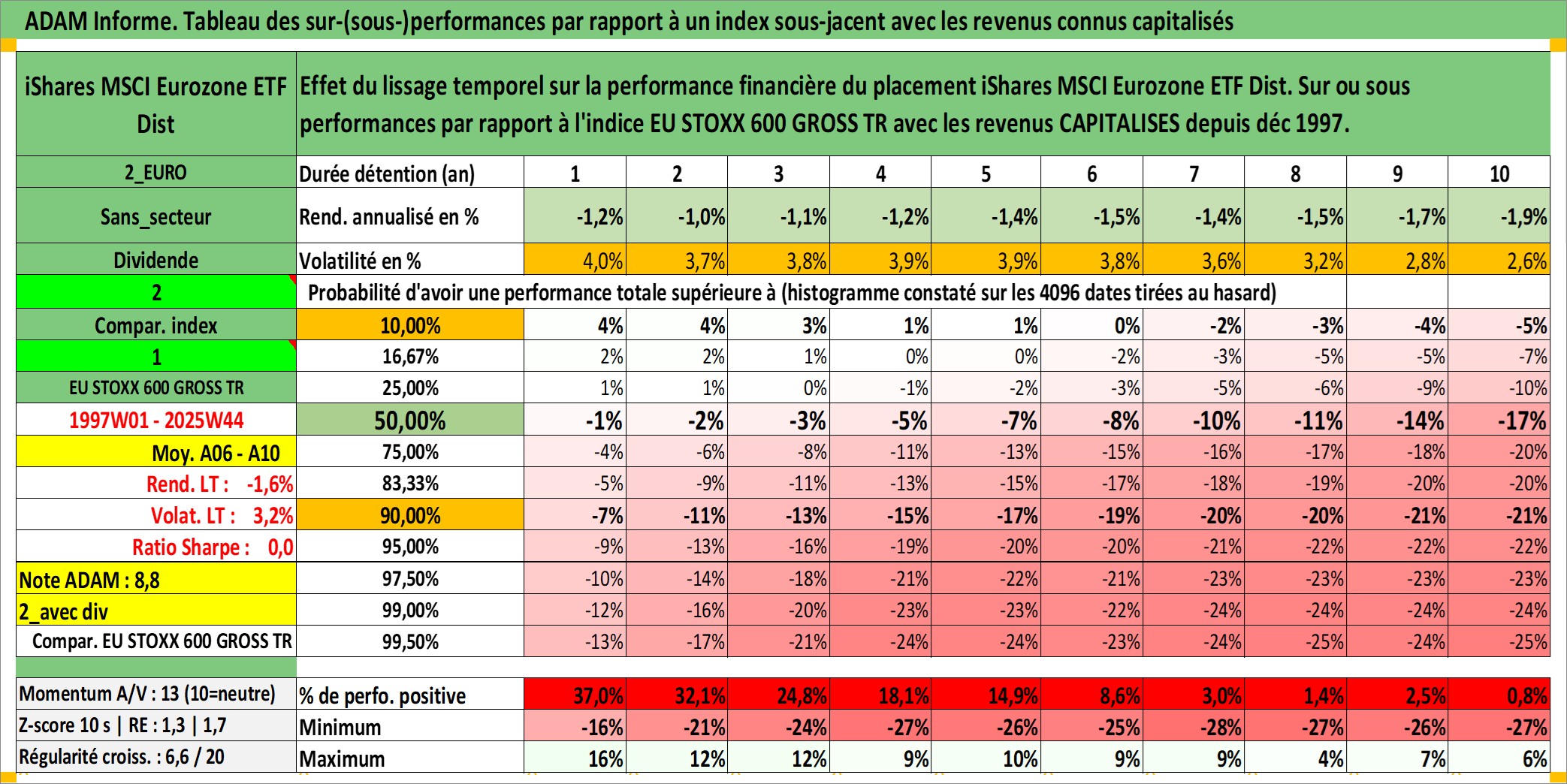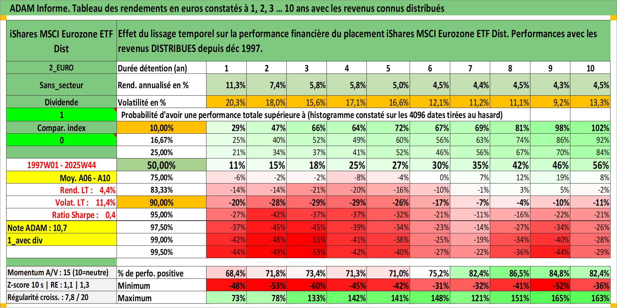 Site dédié aux investisseursPage dédiée sur site financeAnalyse des valorisations hebdomadaires du fonds iShares MSCI Eurozone ETF Dist. Cet actif est cote en USD. Les valorisations sont en contrevaleur EURO et couvrent les semaines 1997W01 a 2025W44. Les revenus de cet actif financier sont pris en compte depuis la semaine 1997W51. La note ESG de cet actif n'est pas connue.