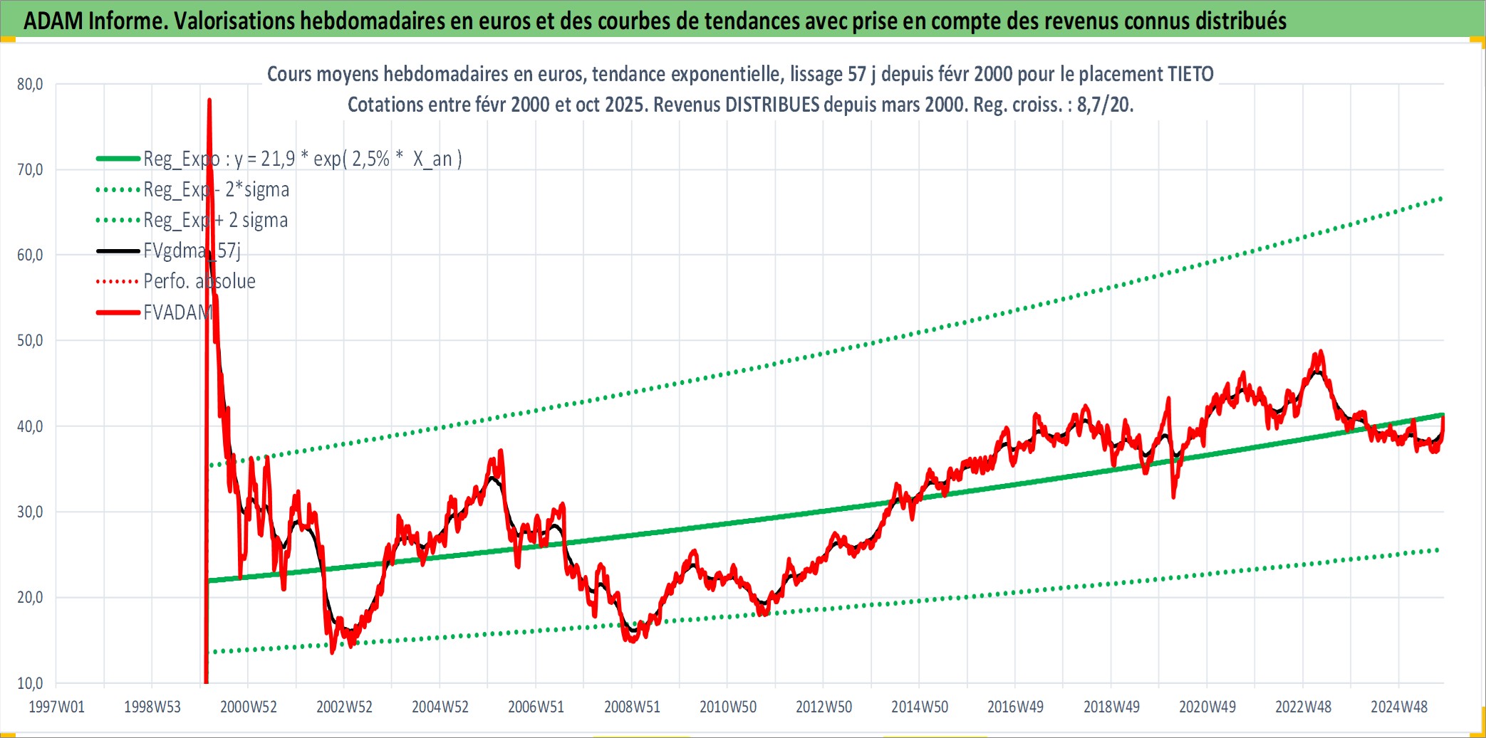 Site dédié aux investisseursPage dédiée sur site financeAnalyse des valorisations hebdomadaires de l'action TIETO. Cet actif est cote en EUR. Les valorisations couvrent les semaines 2000W07 a 2025W44. Les revenus de cet actif financier sont pris en compte depuis la semaine 2000W13. La note ESG de cet actif n'est pas connue.