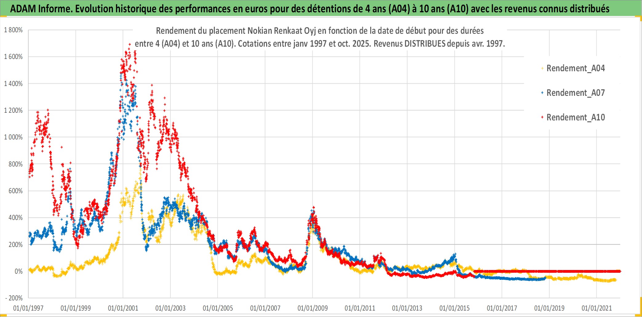 Site dédié aux investisseursPage dédiée sur site financeAnalyse des valorisations hebdomadaires de l'action Nokian Renkaat Oyj. Cet actif est cote en EUR. Les valorisations couvrent les semaines 1997W01 a 2025W44. Les revenus de cet actif financier sont pris en compte depuis la semaine 1997W14. La note globale ESG de cet actif est estimee a 15.0 (apres rebasage entre 0 et 20).