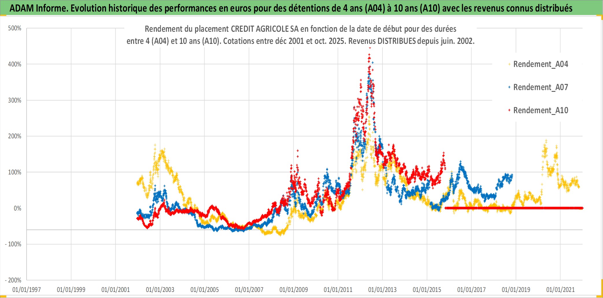 Site dédié aux investisseursPage dédiée sur site financeAnalyse des valorisations hebdomadaires de l'action CREDIT AGRICOLE SA. Cet actif est cote en EUR. Les valorisations couvrent les semaines 2001W50 a 2025W44. Les revenus de cet actif financier sont pris en compte depuis la semaine 2002W23. La note globale ESG de cet actif est estimee a 7.0 (apres rebasage entre 0 et 20).