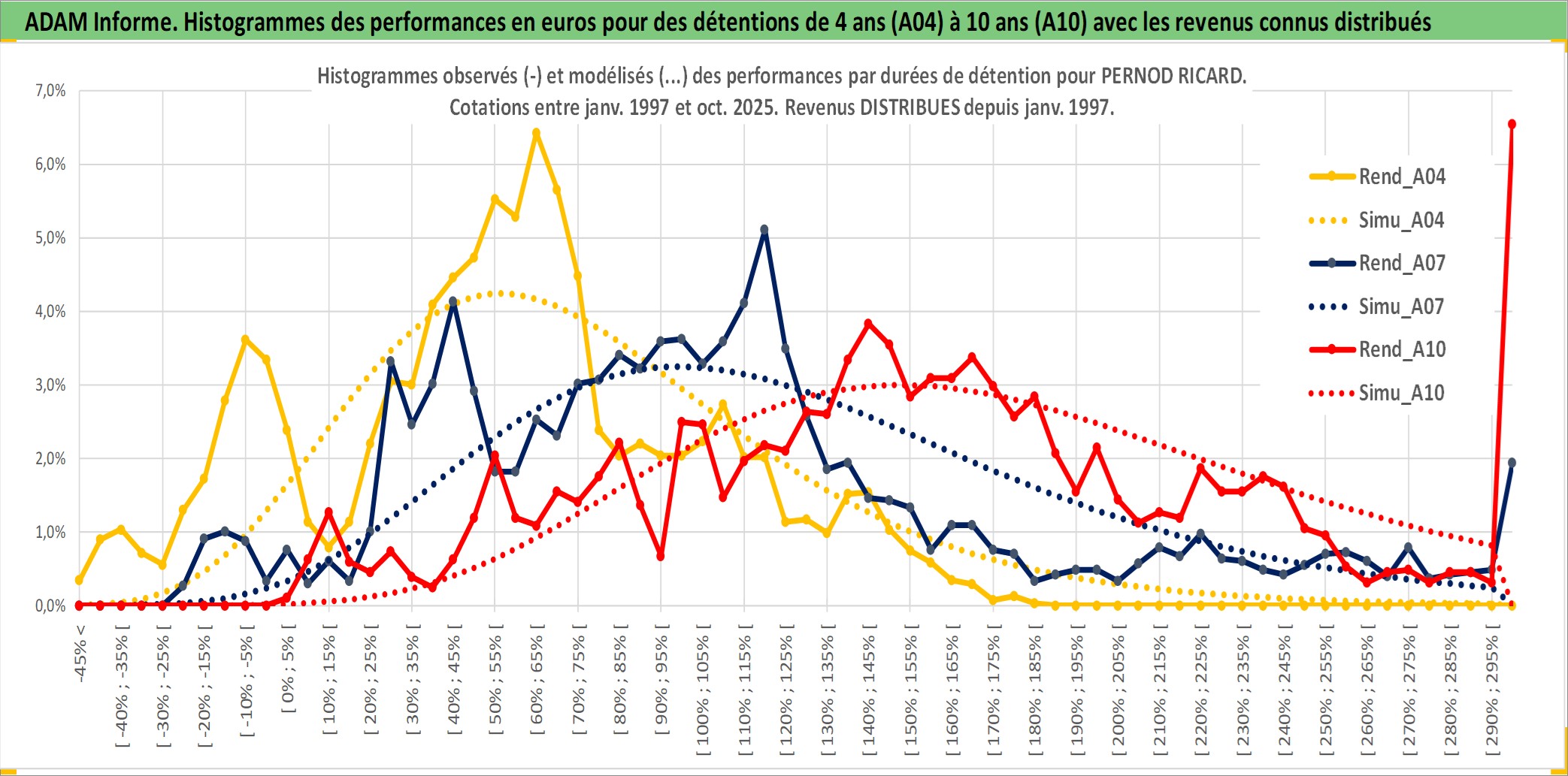 Site dédié aux investisseursPage dédiée sur site financeAnalyse des valorisations hebdomadaires de l'action PERNOD RICARD. Cet actif est cote en EUR. Les valorisations couvrent les semaines 1997W01 a 2025W44. Les revenus de cet actif financier sont pris en compte depuis la semaine 1997W03. La note globale ESG de cet actif est estimee a 13.0 (apres rebasage entre 0 et 20).