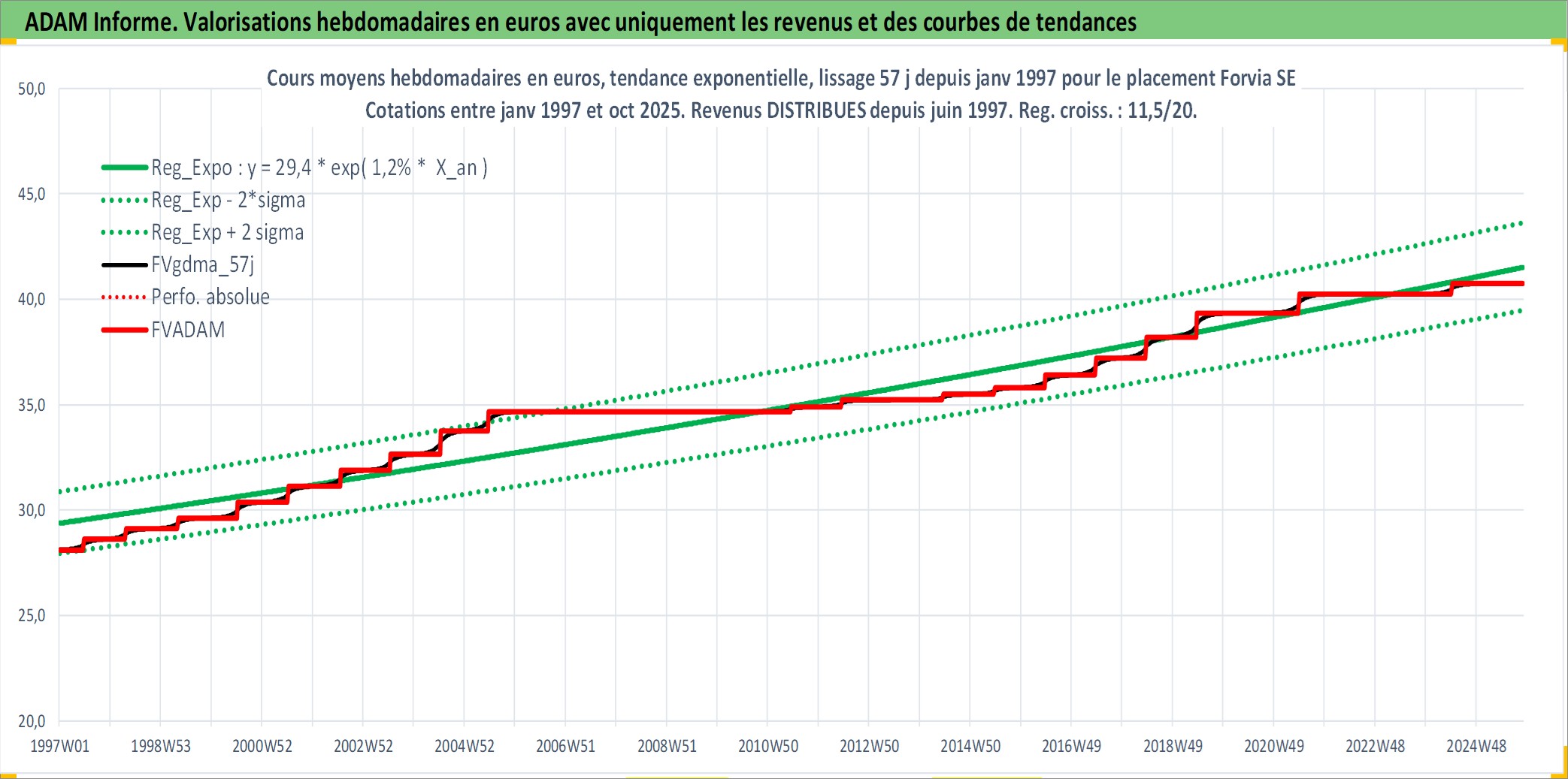 Site dédié aux investisseursPage dédiée sur site financeAnalyse des valorisations hebdomadaires de l'action Forvia SE. Cet actif est cote en EUR. Les valorisations couvrent les semaines 1997W01 a 2025W44. Les revenus de cet actif financier sont pris en compte depuis la semaine 1997W26. La note ESG de cet actif n'est pas connue.
