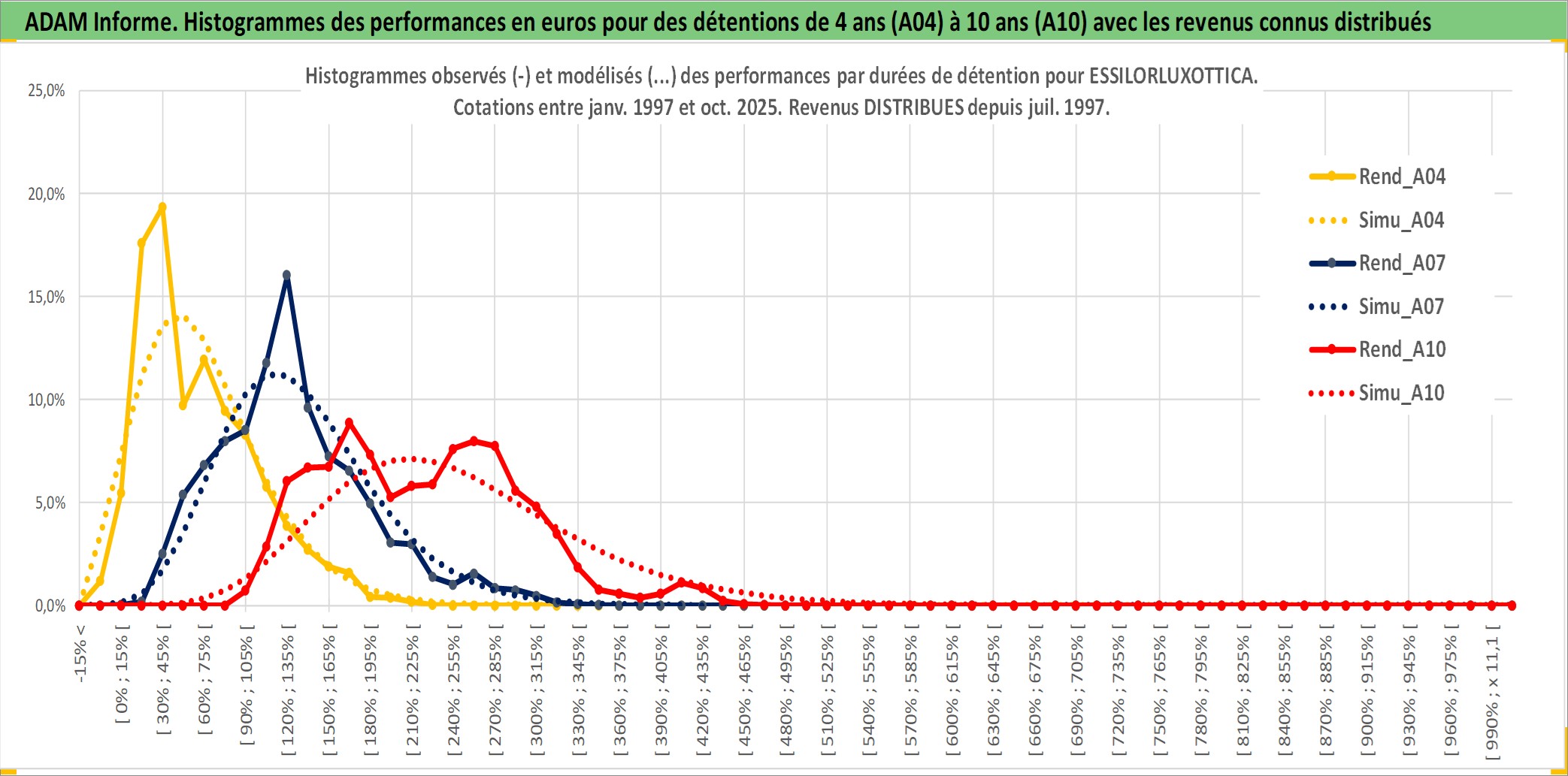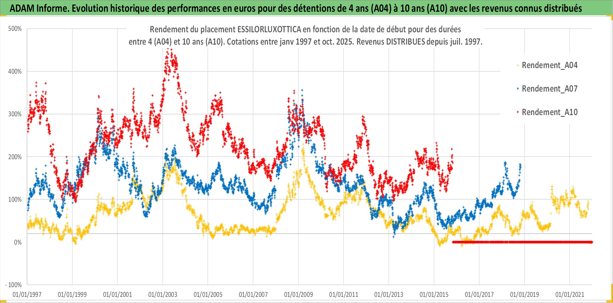 Site dédié aux investisseursPage dédiée sur site financeAnalyse des valorisations hebdomadaires de l'action ESSILORLUXOTTICA. Cet actif est cote en EUR. Les valorisations couvrent les semaines 1997W01 a 2025W44. Les revenus de cet actif financier sont pris en compte depuis la semaine 1997W27. La note globale ESG de cet actif est estimee a 10.0 (apres rebasage entre 0 et 20).