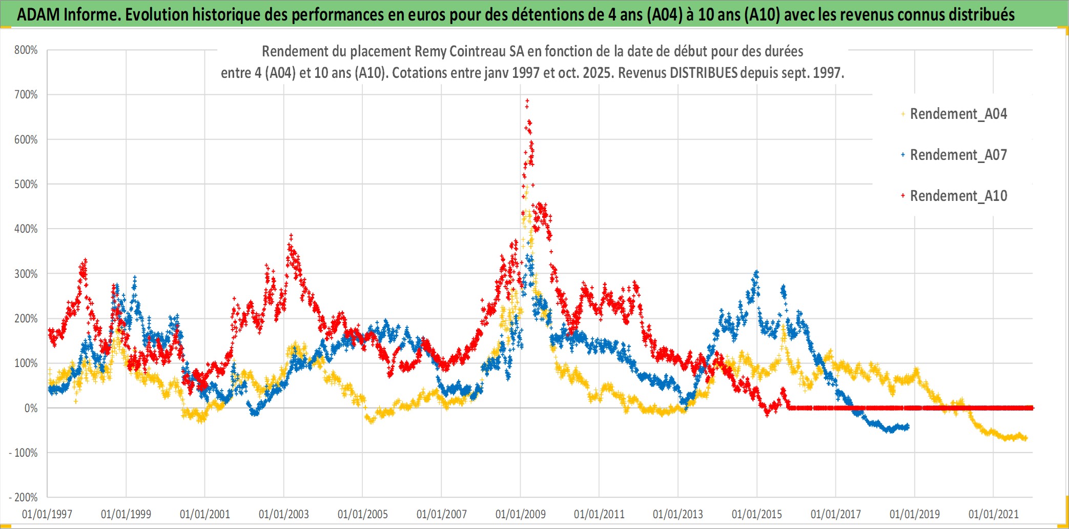 Site dédié aux investisseursPage dédiée sur site financeAnalyse des valorisations hebdomadaires de l'action Remy Cointreau SA. Cet actif est cote en EUR. Les valorisations couvrent les semaines 1997W01 a 2025W44. Les revenus de cet actif financier sont pris en compte depuis la semaine 1997W38. La note ESG de cet actif n'est pas connue.
