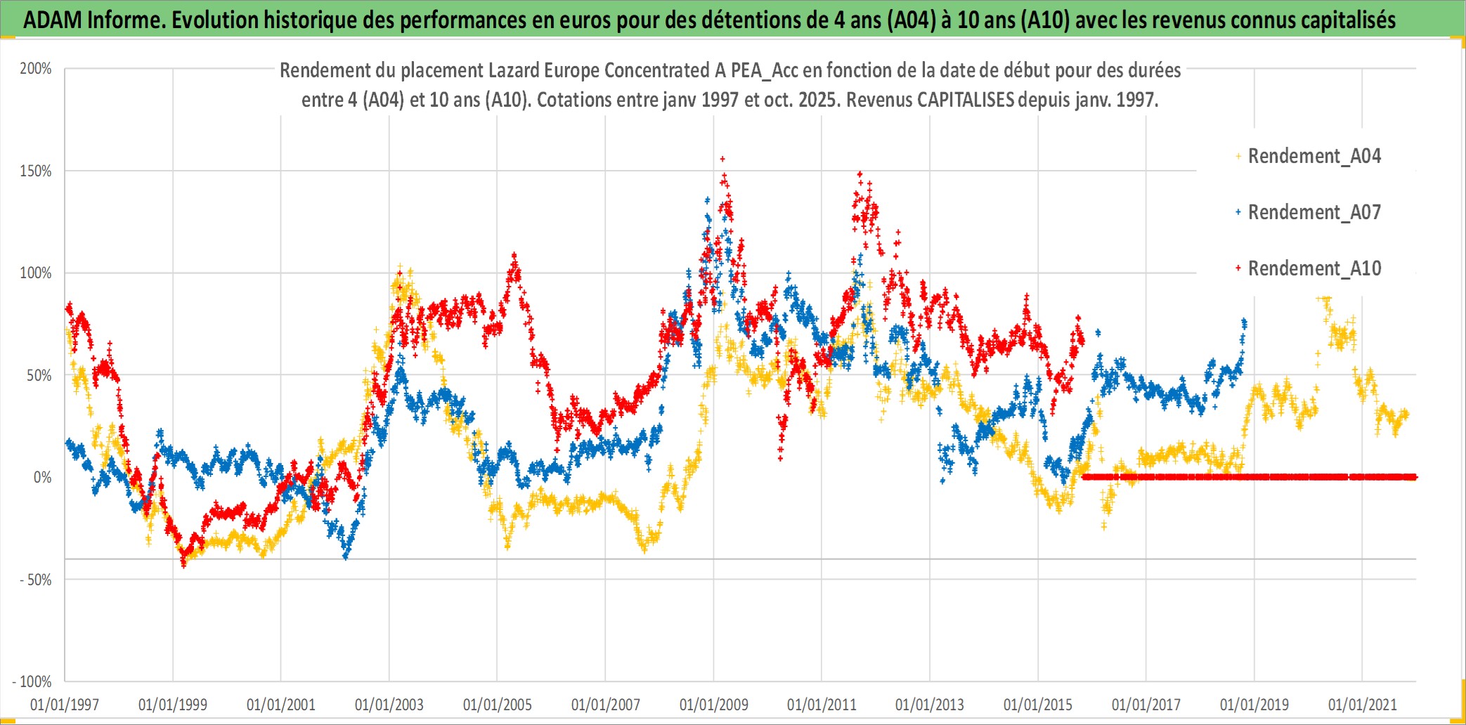 Site dédié aux investisseursPage dédiée sur site financeAnalyse des valorisations hebdomadaires du fonds Lazard Europe Concentrated A PEA_Acc. Cet actif est cote en EUR. Les valorisations couvrent les semaines 1997W01 a 2025W44. Les revenus de cet actif financier sont pris en compte depuis la semaine 1997W01. La note ESG de cet actif n'est pas connue.