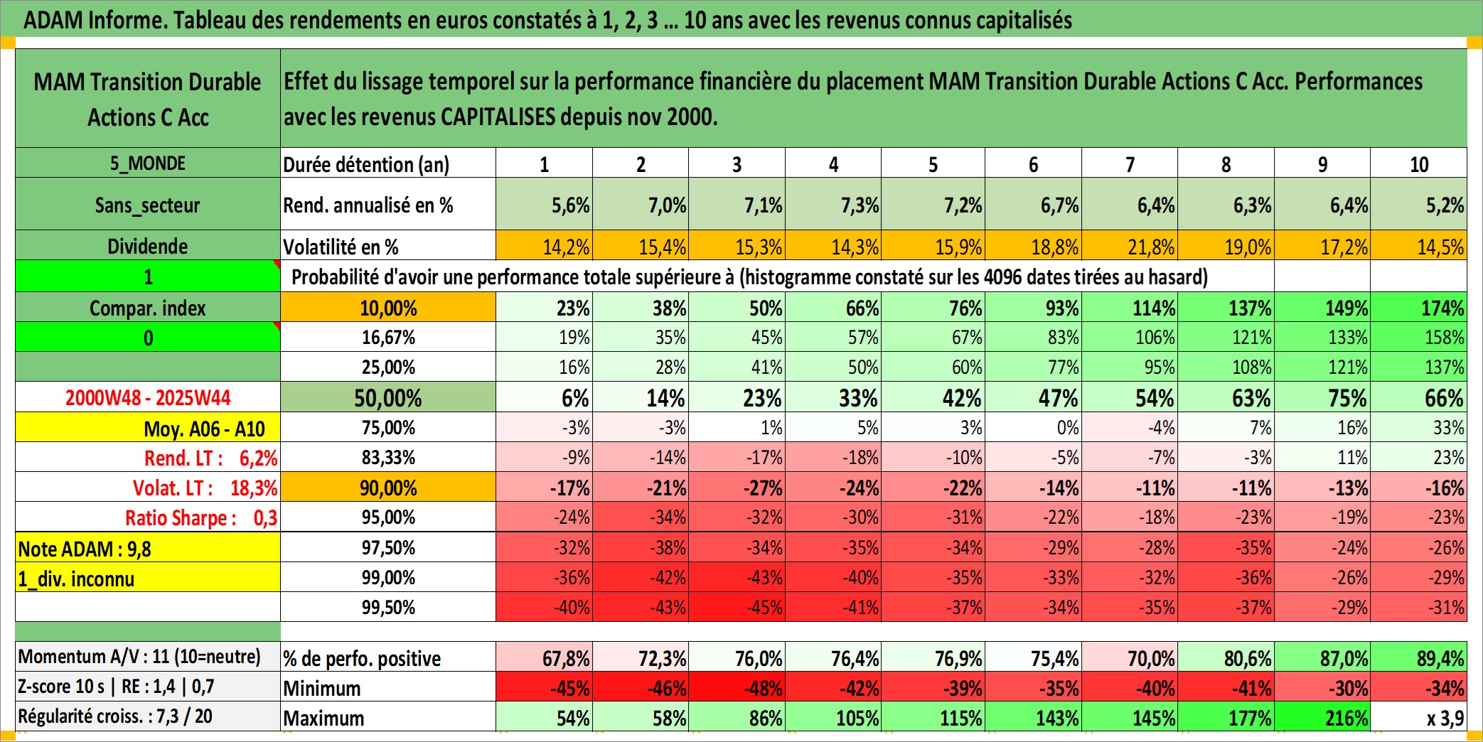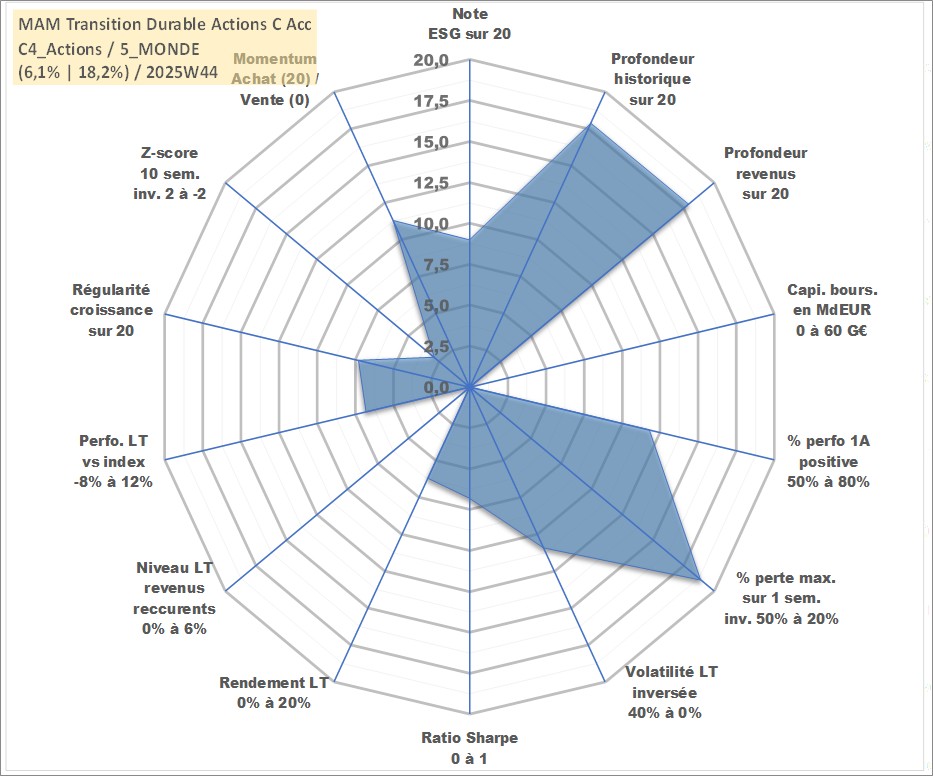 Site dédié aux investisseursPage dédiée sur site financeAnalyse des valorisations hebdomadaires du fonds MAM Transition Durable Actions C Acc. Cet actif est cote en EUR. Les valorisations couvrent les semaines 2000W48 a 2025W44. Les revenus de cet actif financier sont pris en compte depuis la semaine 2000W48. La note globale ESG de cet actif est estimee a 9.0 (apres rebasage entre 0 et 20).