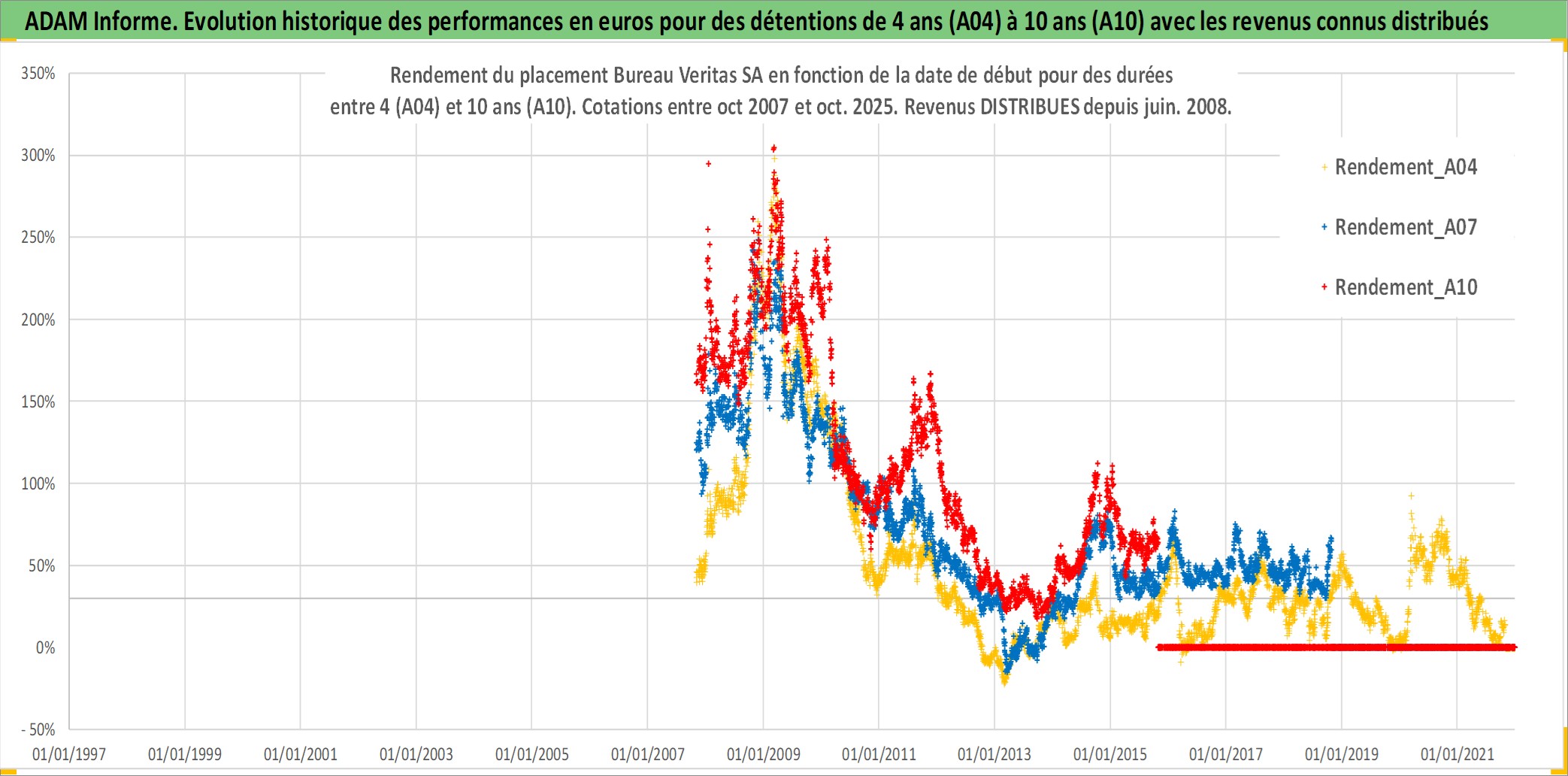 Site dédié aux investisseursPage dédiée sur site financeAnalyse des valorisations hebdomadaires de l'action Bureau Veritas SA. Cet actif est cote en EUR. Les valorisations couvrent les semaines 2007W43 a 2025W44. Les revenus de cet actif financier sont pris en compte depuis la semaine 2008W24. La note globale ESG de cet actif est estimee a 17.0 (apres rebasage entre 0 et 20).