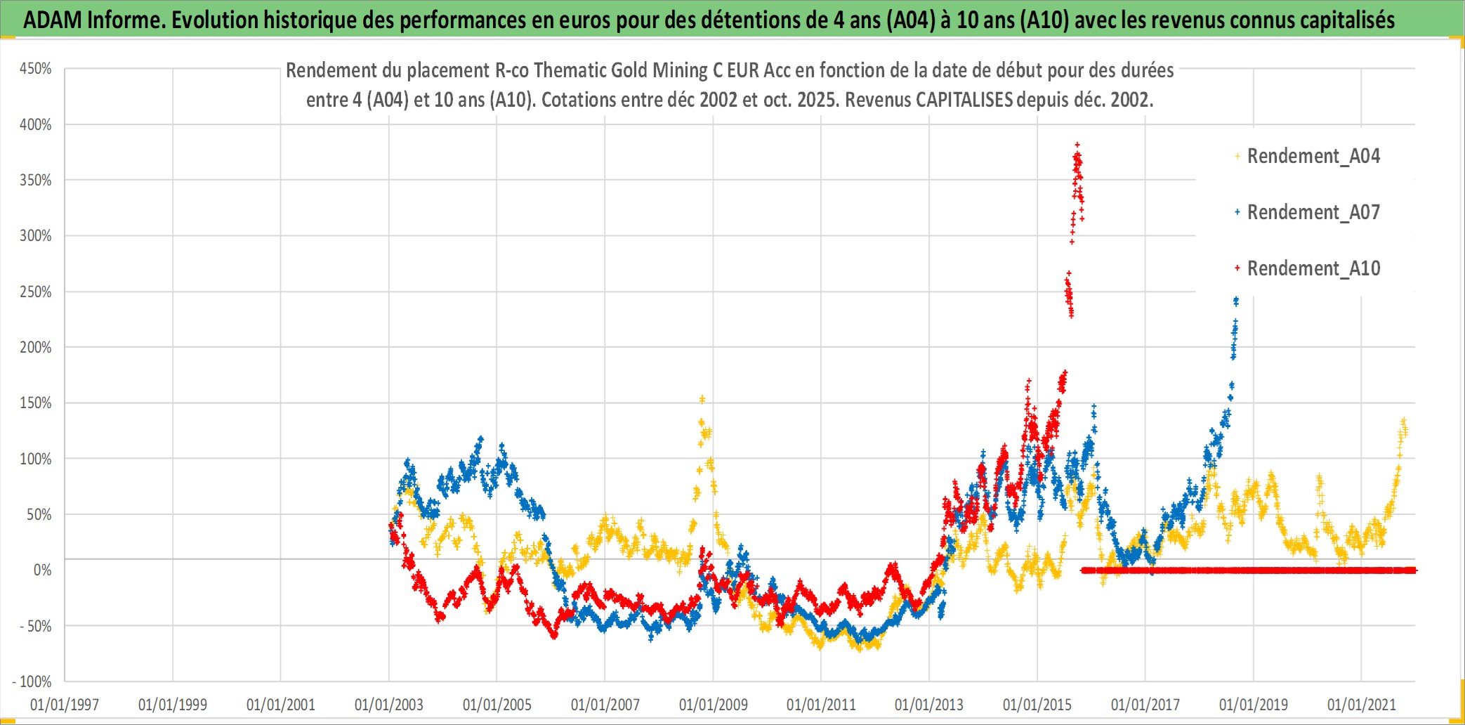 Site dédié aux investisseursPage dédiée sur site financeAnalyse des valorisations hebdomadaires du fonds R-co Thematic Gold Mining C EUR Acc. Cet actif est cote en EUR. Les valorisations couvrent les semaines 2003W01 a 2025W44. Les revenus de cet actif financier sont pris en compte depuis la semaine 2003W01. La note globale ESG de cet actif est estimee a 2.0 (apres rebasage entre 0 et 20).